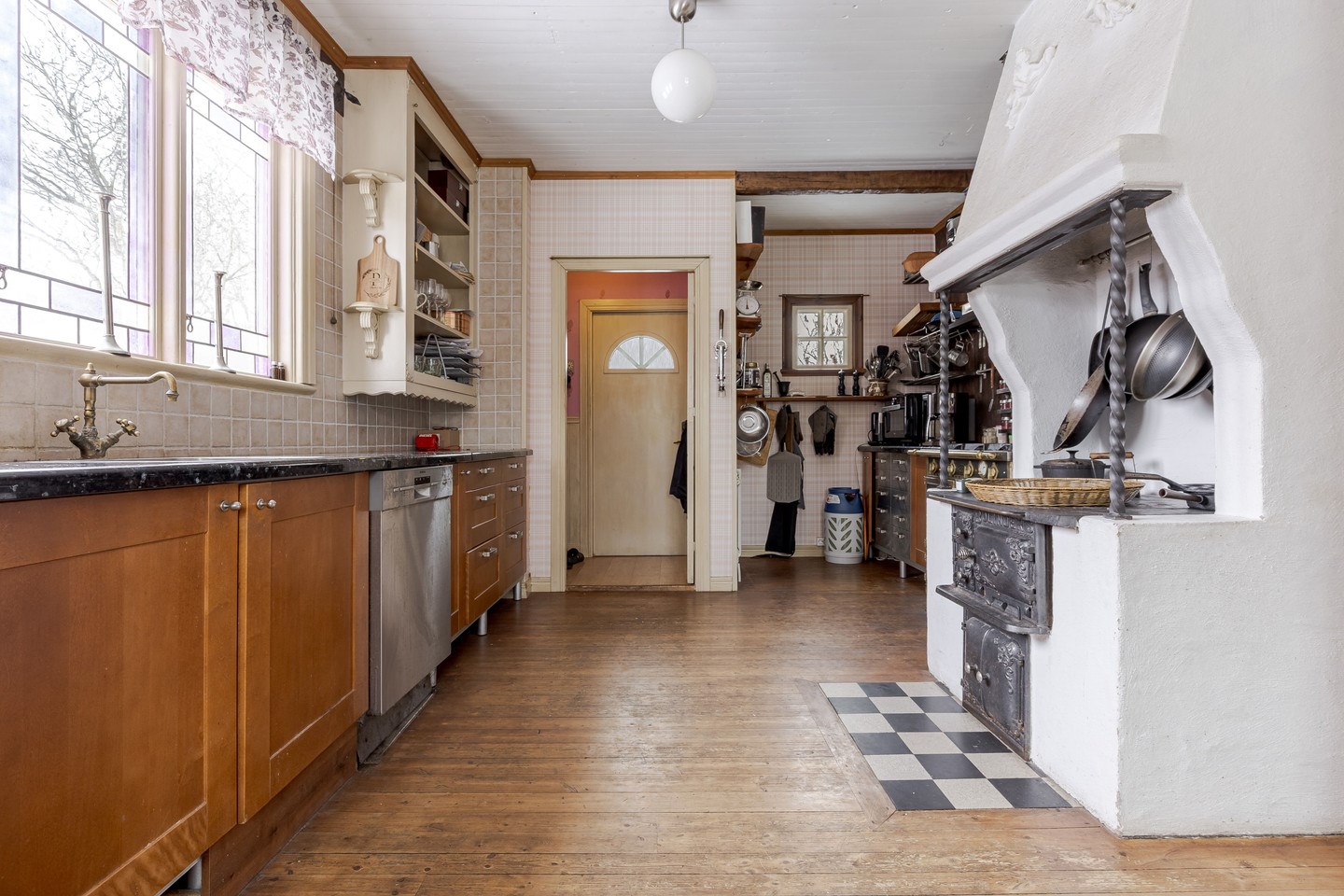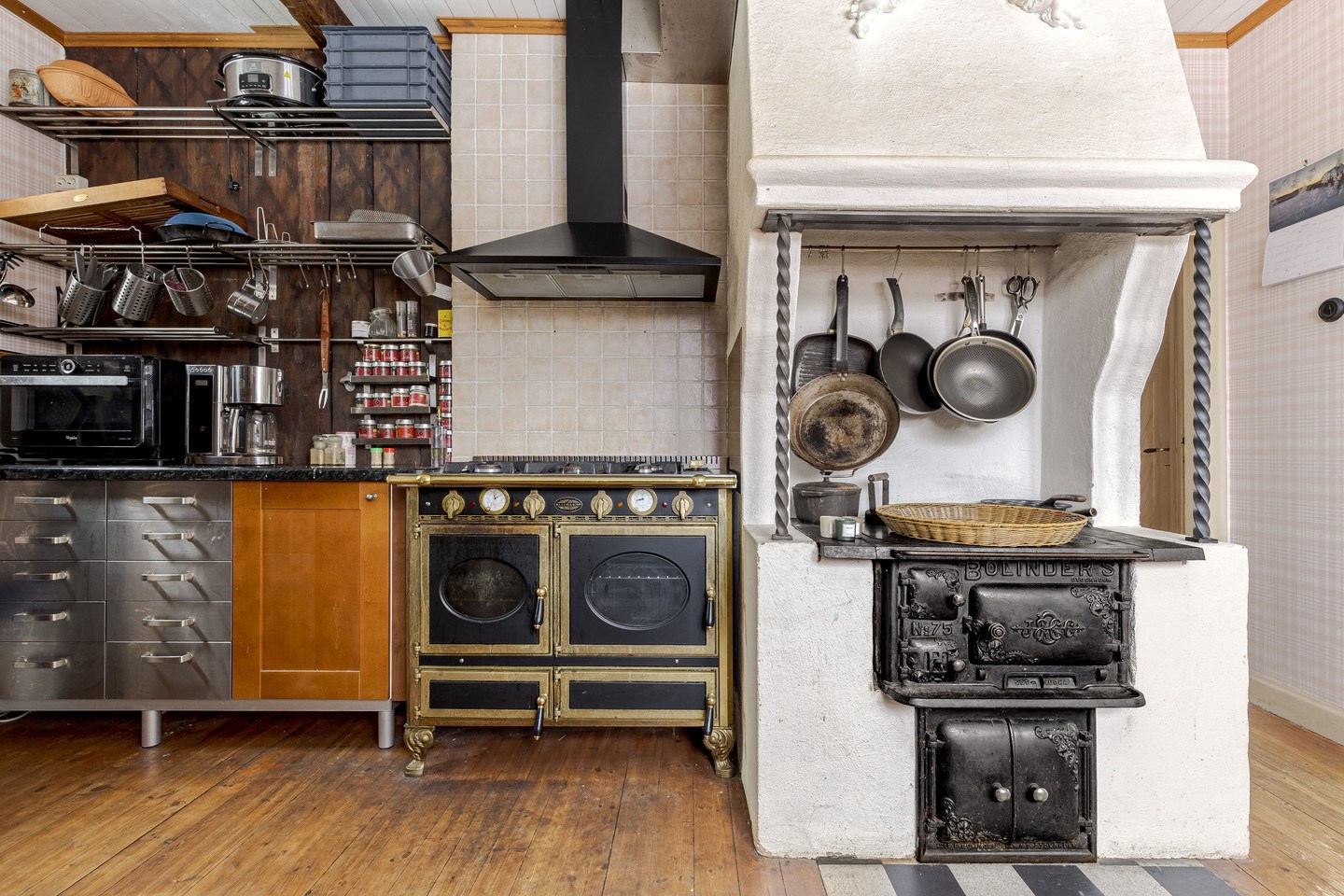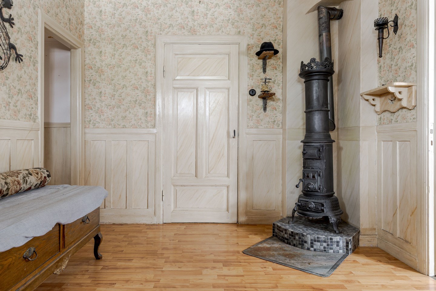 Eingangsbereich/Vorflur / Flur mit Kaminofen / Esszimmer mit Kachelofen / Wohnzimmer mit Kachelofen (derzeit als Schlafzimmer genutzt) / Schlafzimmer / Küche mit Gasherd, Holzherd, Kühlschrank, Gefrierschrank, Nebeneingang