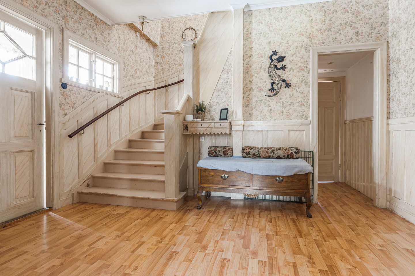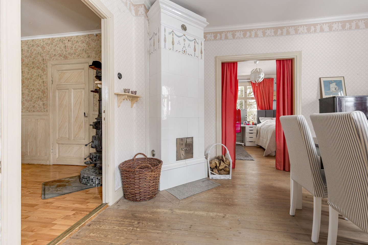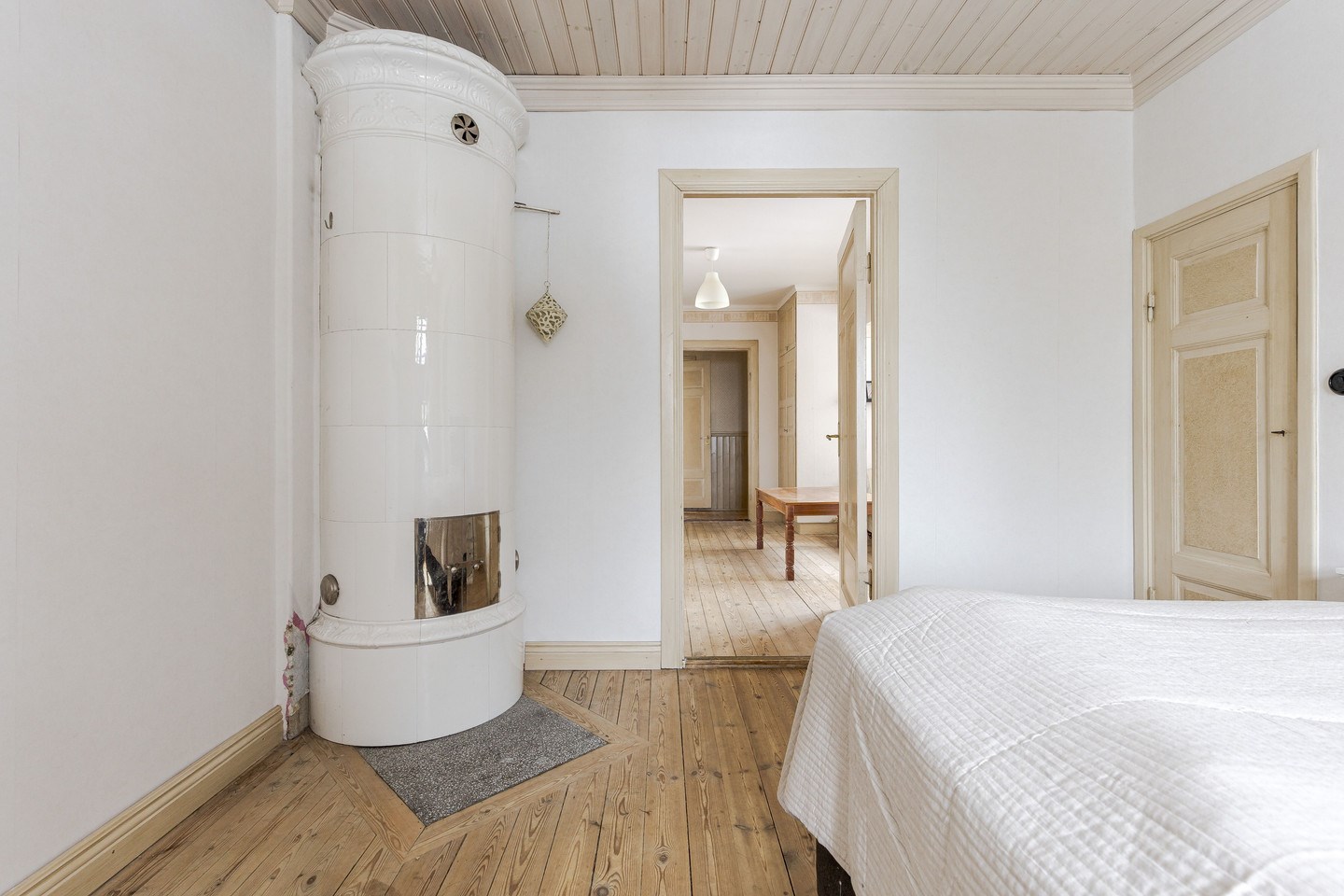 Eingangsbereich/Vorflur / Flur mit Kaminofen / Esszimmer mit Kachelofen / Wohnzimmer mit Kachelofen (derzeit als Schlafzimmer genutzt) / Schlafzimmer / Küche mit Gasherd, Holzherd, Kühlschrank, Gefrierschrank, Nebeneingang