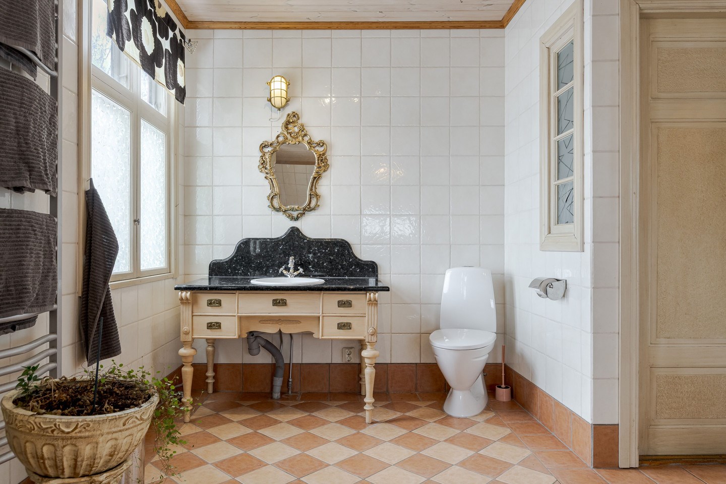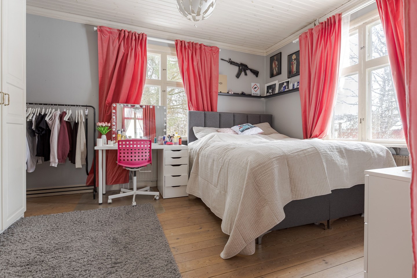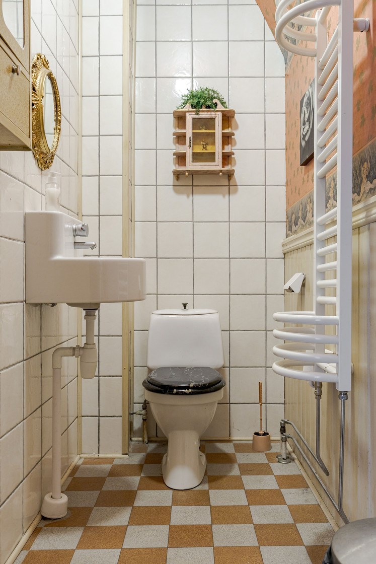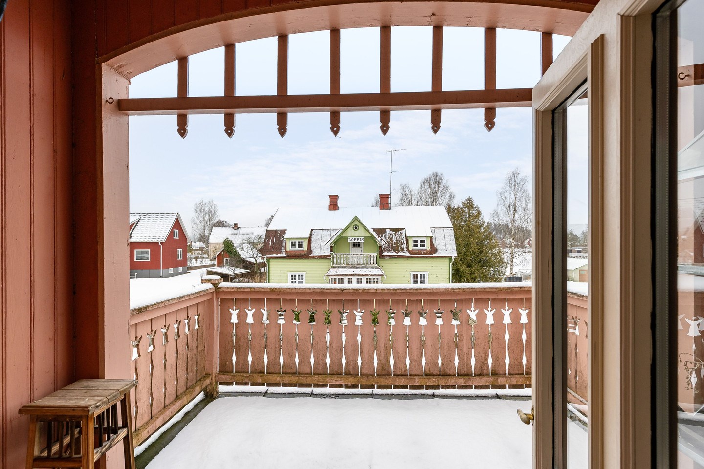Flur mit Ausgang zum Balkon / 3 Schlafzimmer (2x mit Kachelofen) / Badezimmer mit WC, Badewanne und Dusche / WC