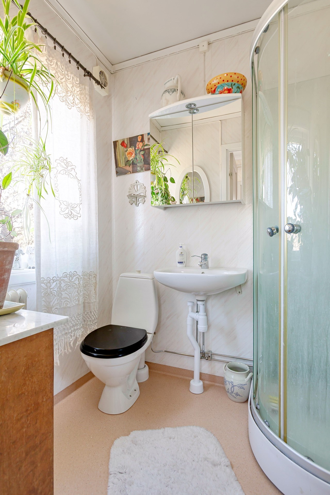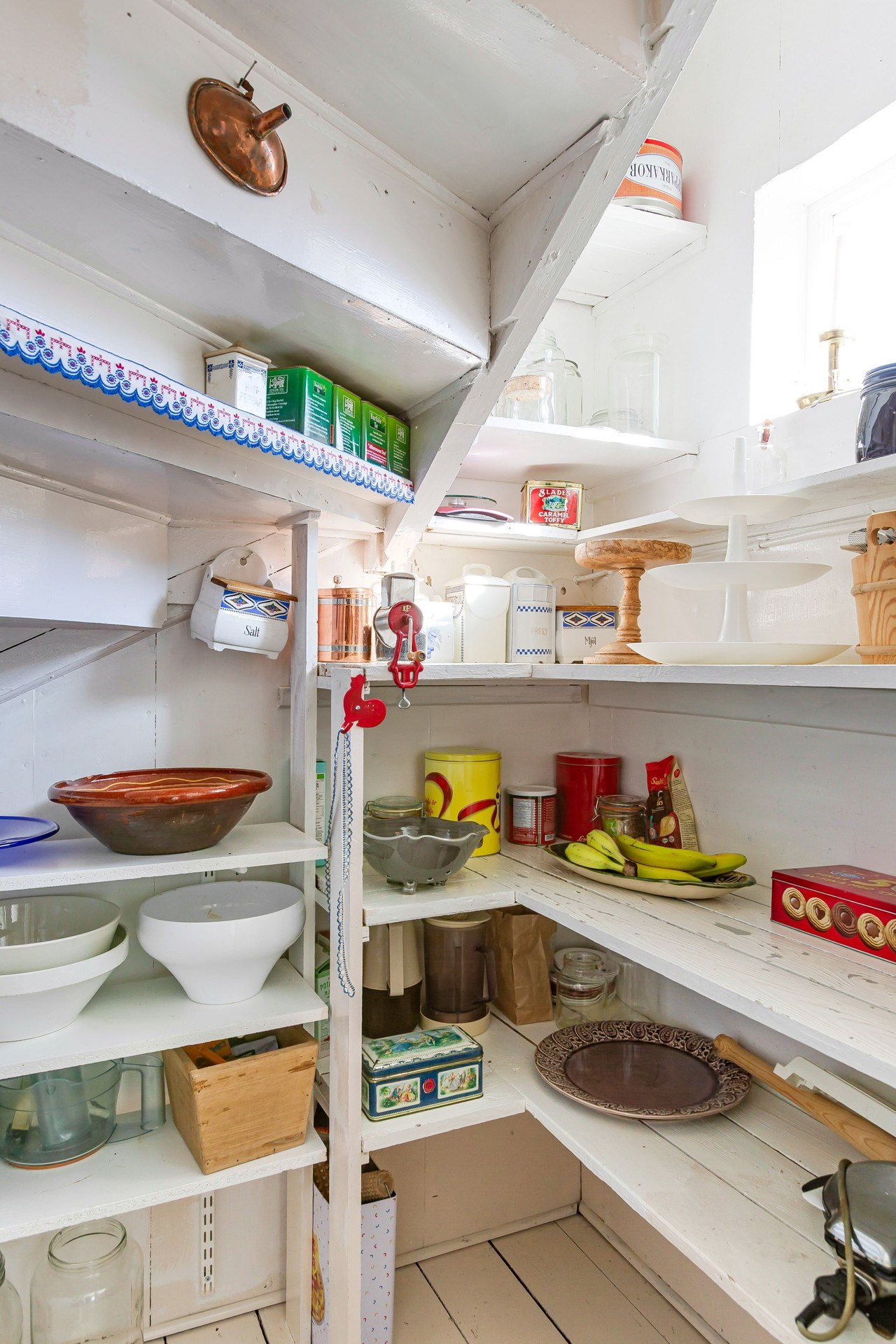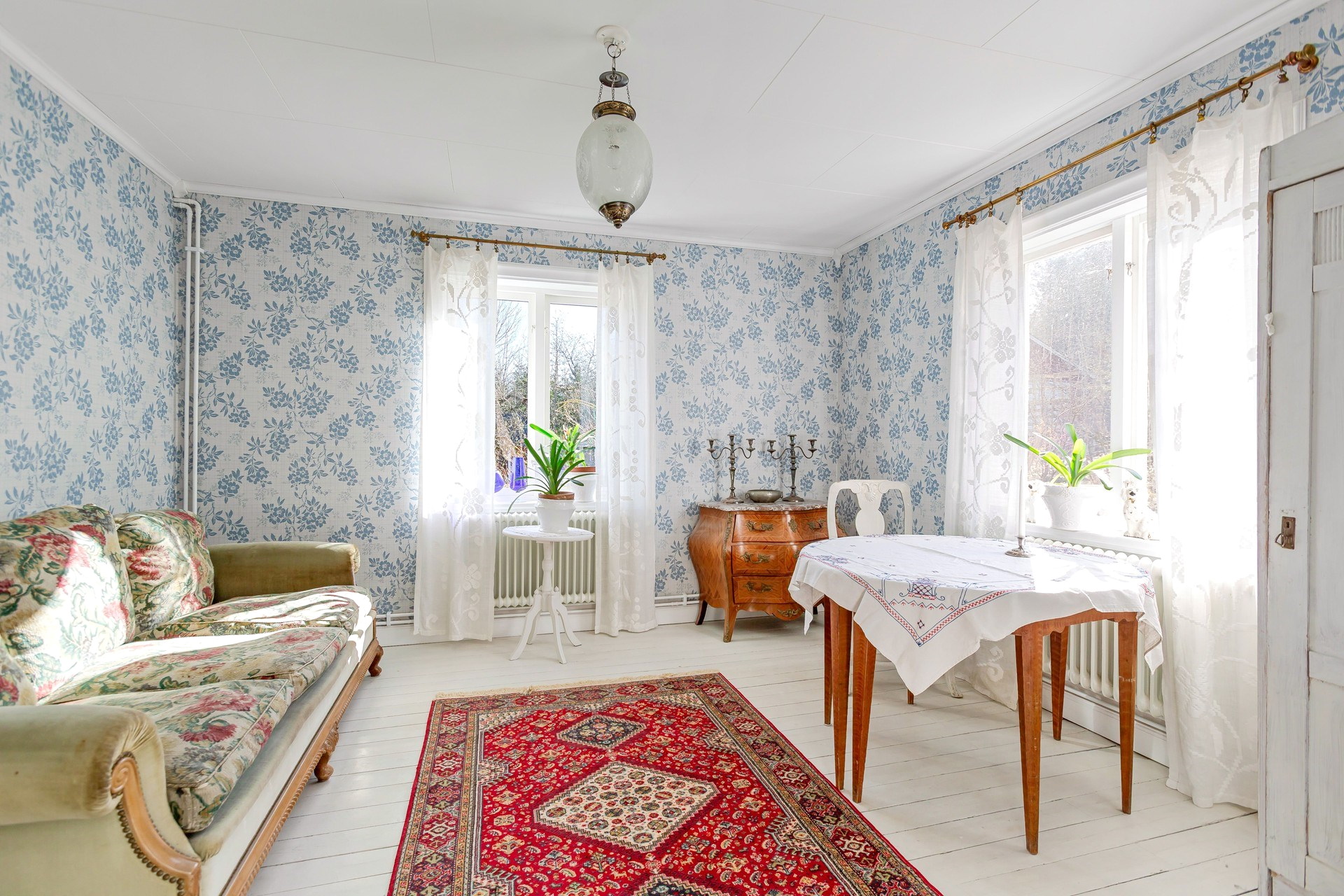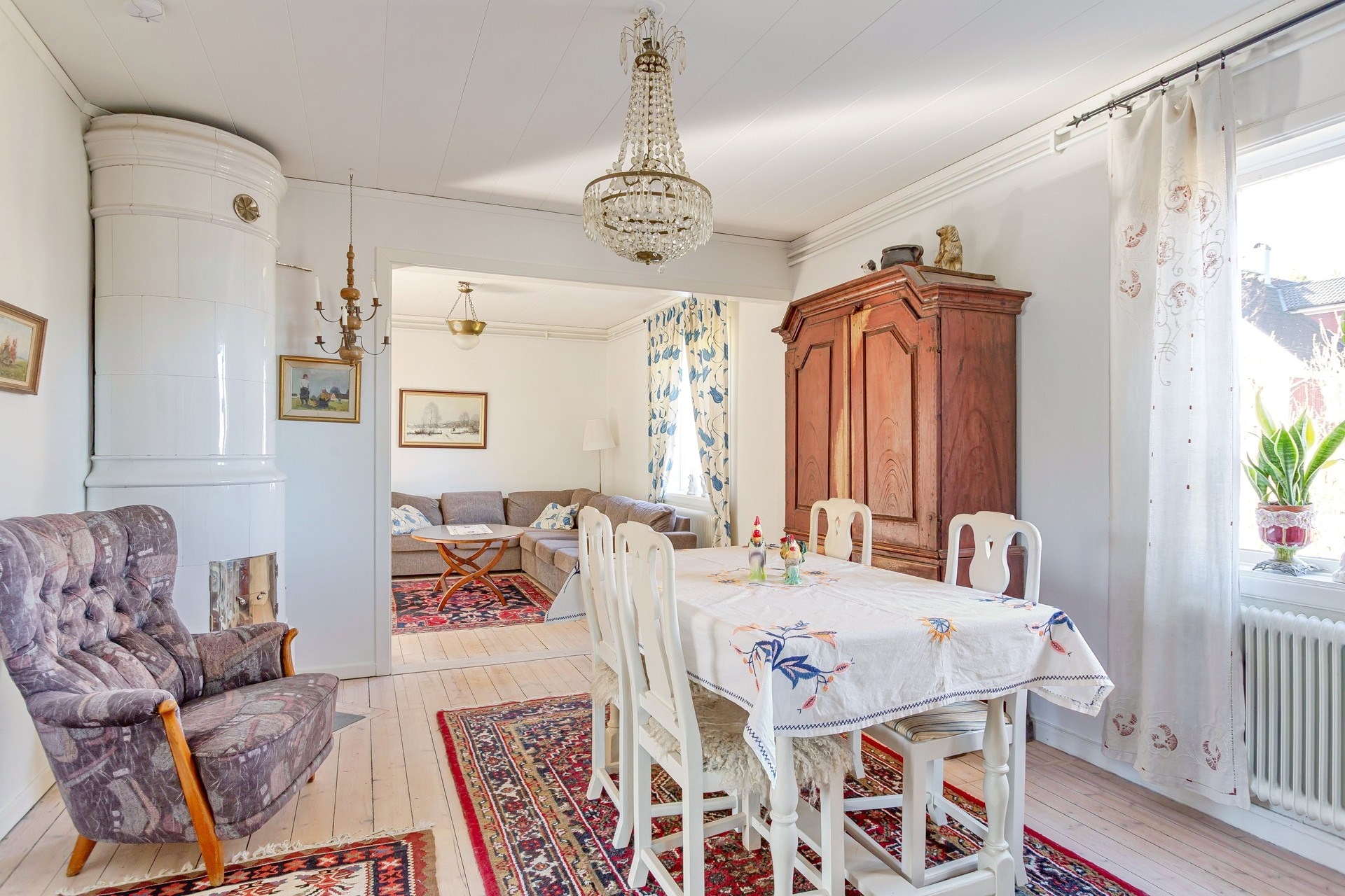 Flur / Esszimmer mit Kachelofen / Wohnzimmer mit Kachelofen / Küche mit E-Herd, Kühlschrank, Gefrierschrank, Geschirrspüler und Speisekammer / Schlafzimmer mit Kachelofen / Badezimmer mit WC und Dusche