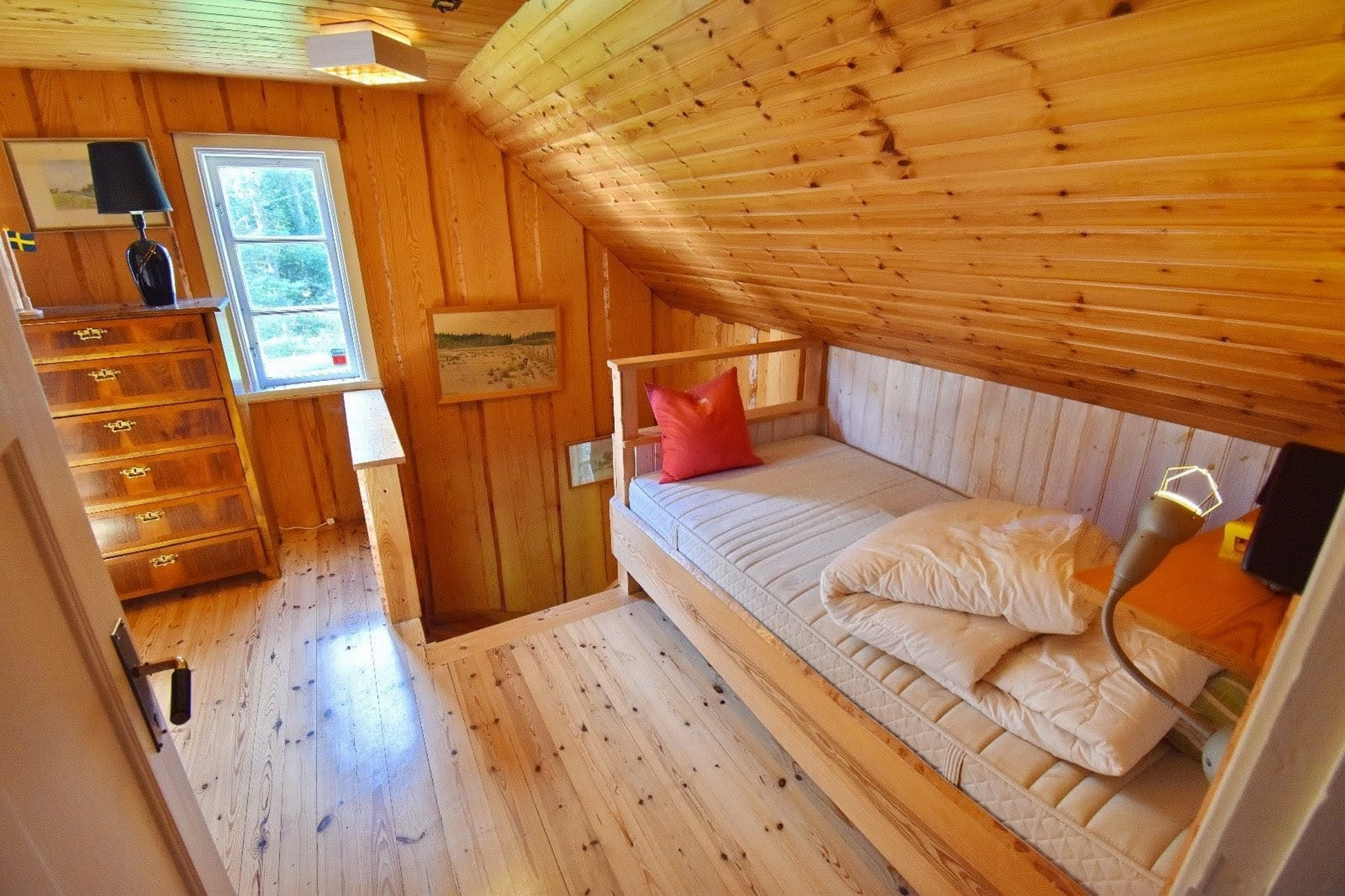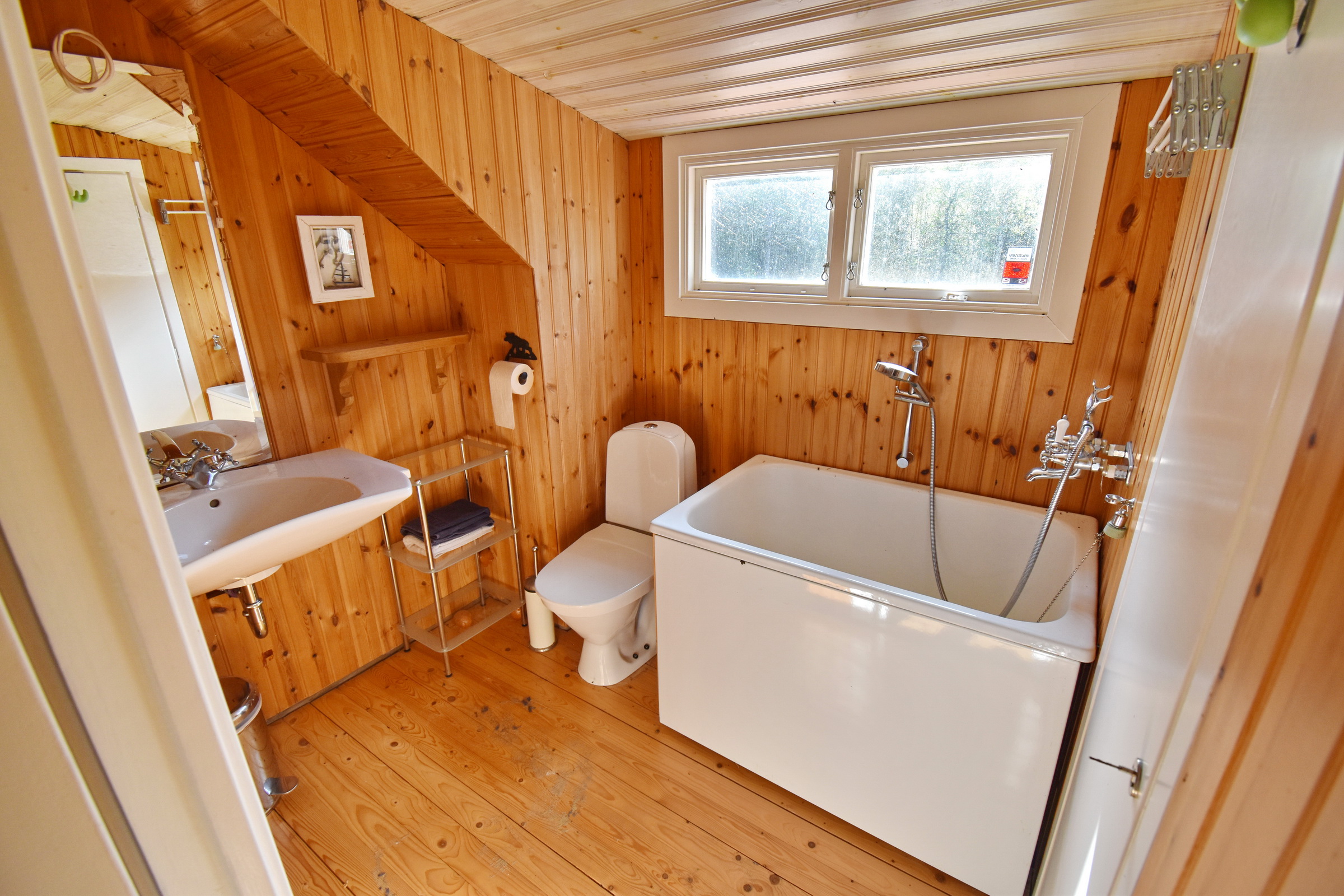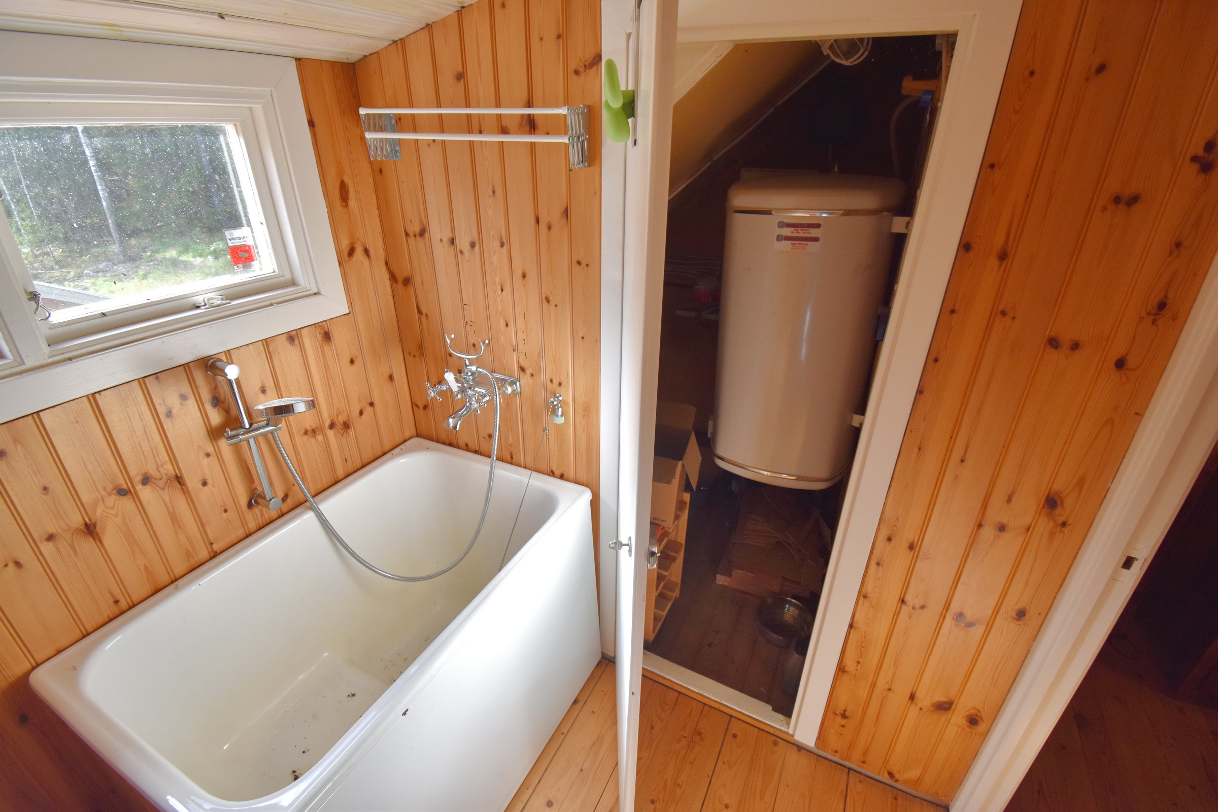 möblierbarer Flur mit Schlafplatz / Schlafzimmer mit 2 Abstellkammern / Badezimmer mit WC und kleiner Badewanne / Abstellraum mit Warmwasserboiler