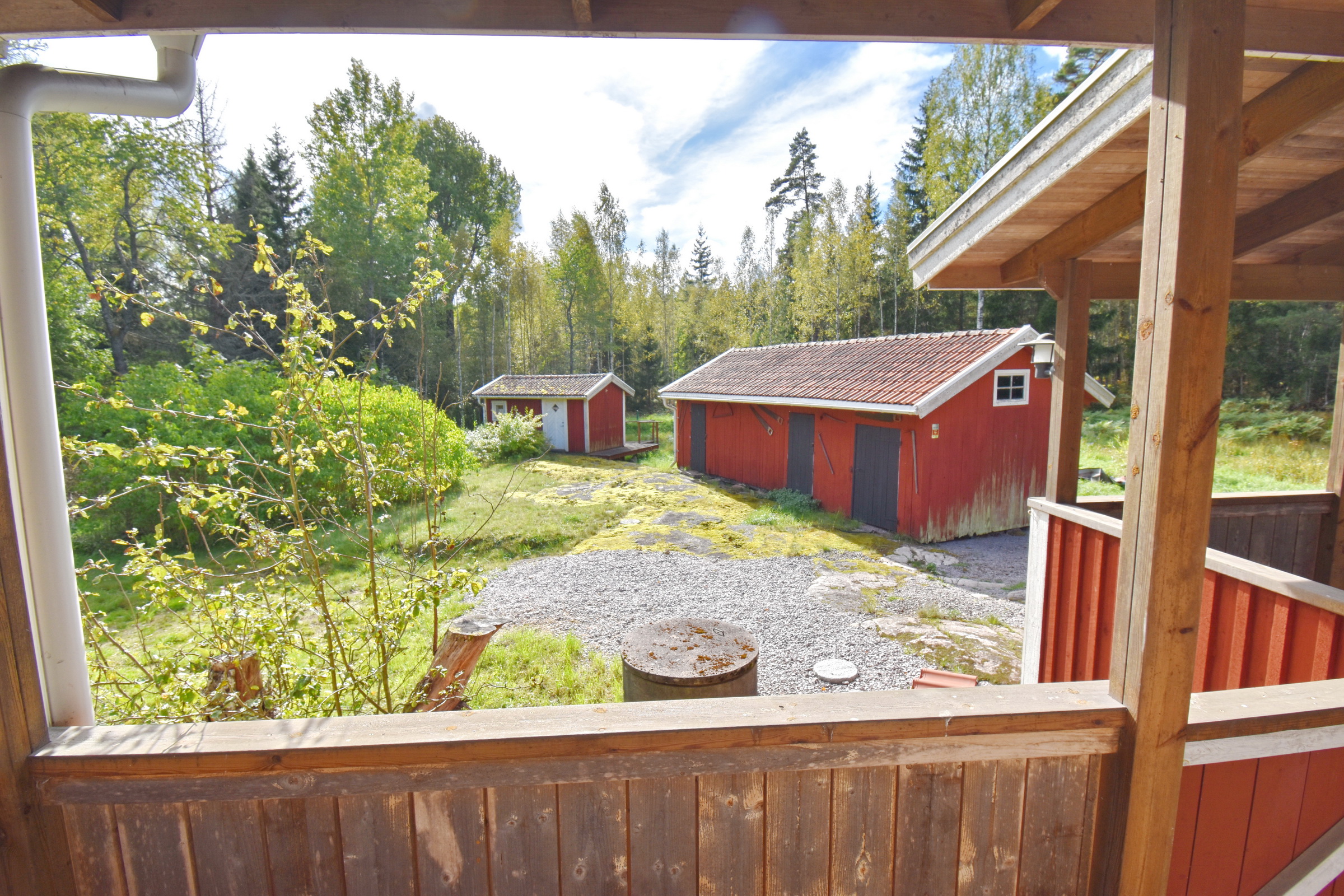 Ein Windrad steht 840 Meter Luftlinie vom Haus entfernt im Wald (sowie weitere in größerer Entfernung). Es ist vom Haus aus kaum zu sehen und zu hören. Dennoch besteht so lange es im Betrieb ist Anspruch auf eine jährliche Ausgleichszahlung abhängig von der Produktionsleistung (vertraglich festgeschrieben). Die Schätzung (!) für die jährliche Gutschrift beträgt ca. 1.000€.