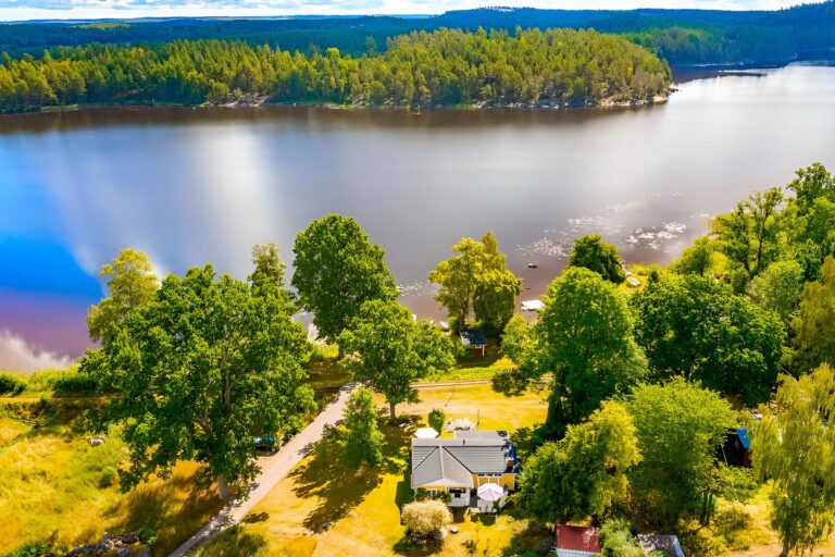 Ruhige Lage mit einigen Nachbarhäusern und schönem Seeblick.