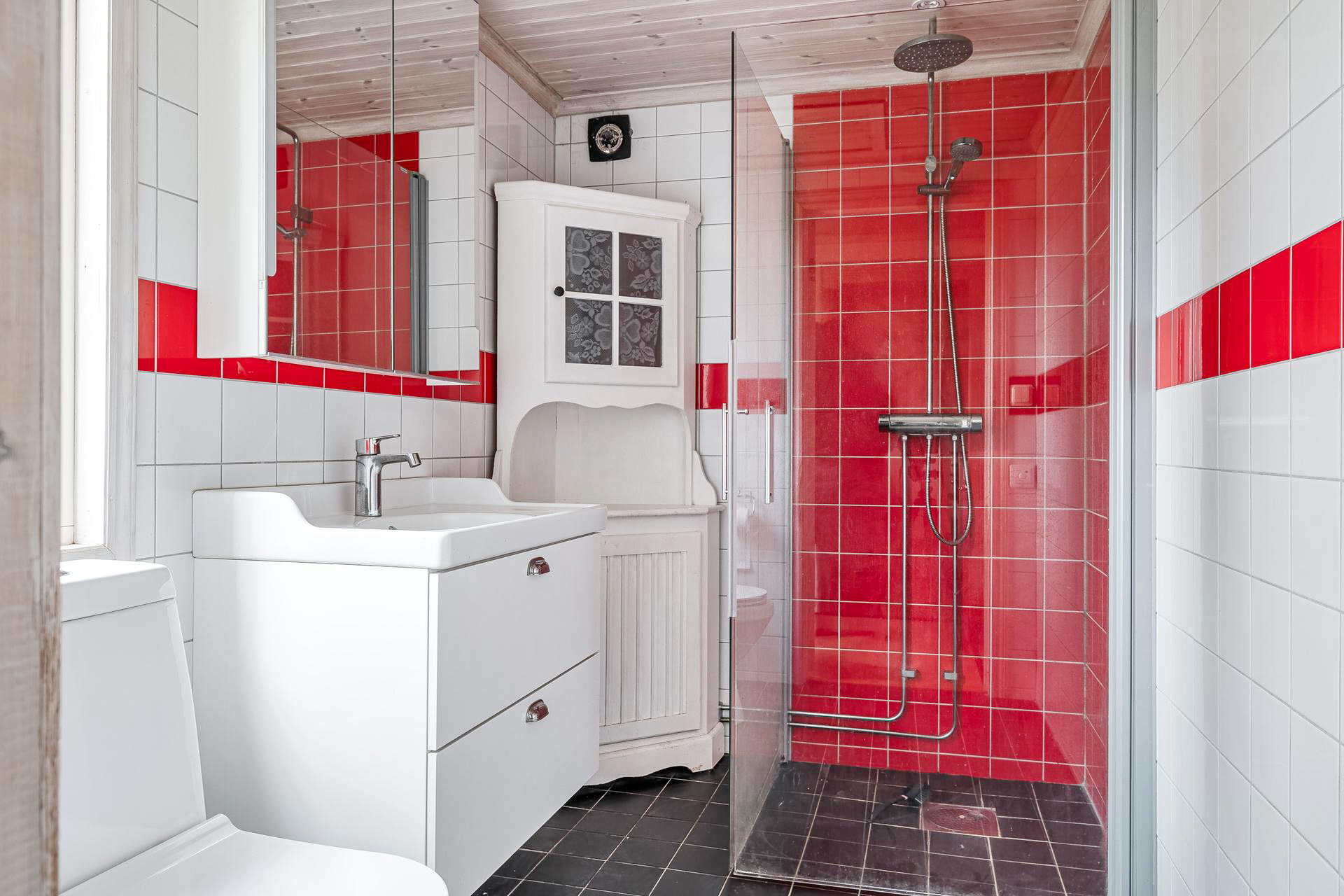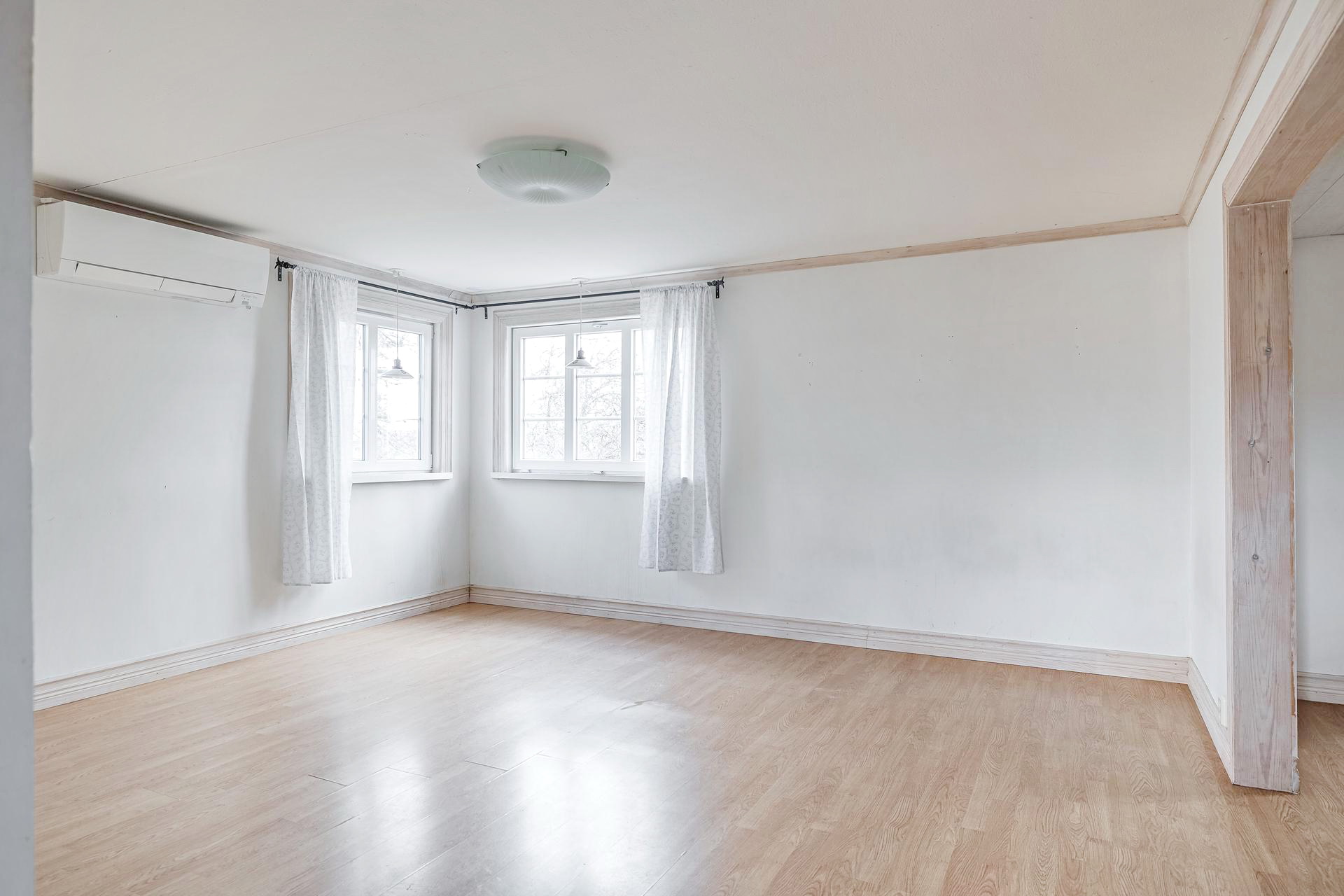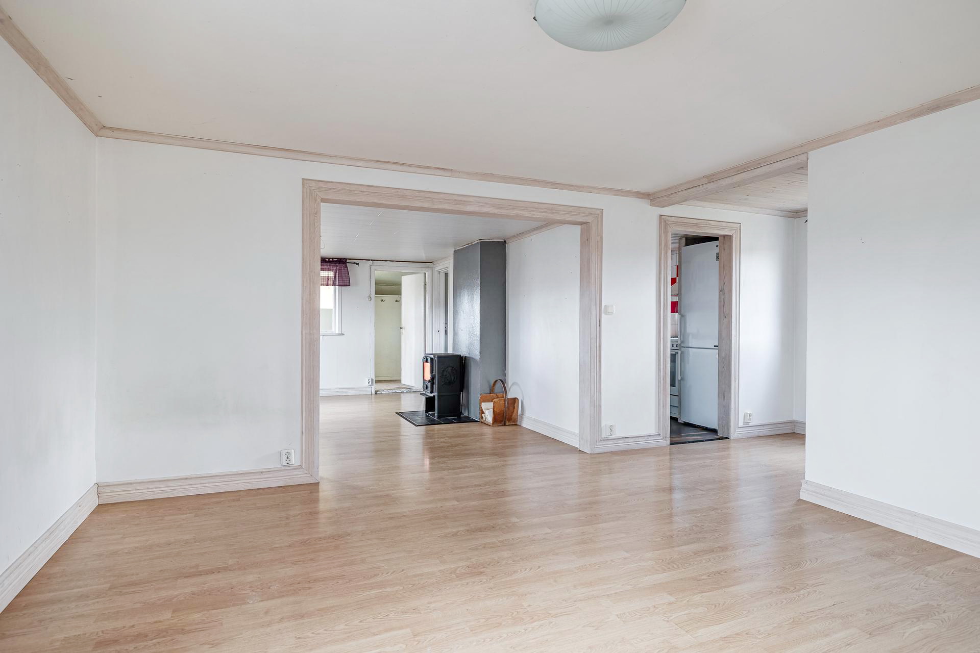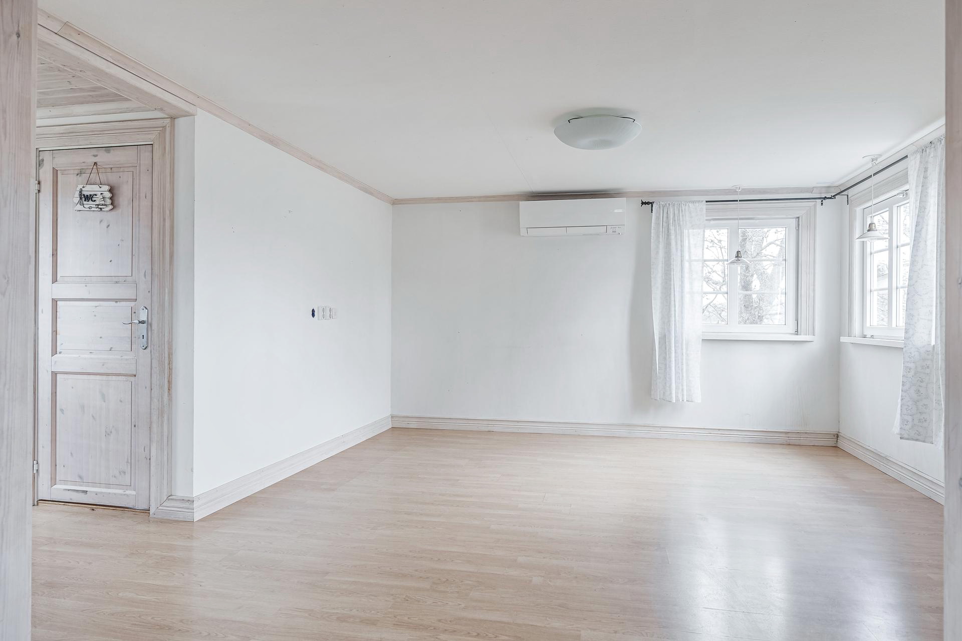 Älteres rot-weißes Holzhaus Nähe Vimmerby mit schönem Ausblick in die Landschaft! Wasser/Abwasser und Badezimmer renoviert. 69 m² Wohnfläche + Vollkeller. Garten mit Abstellschuppen.