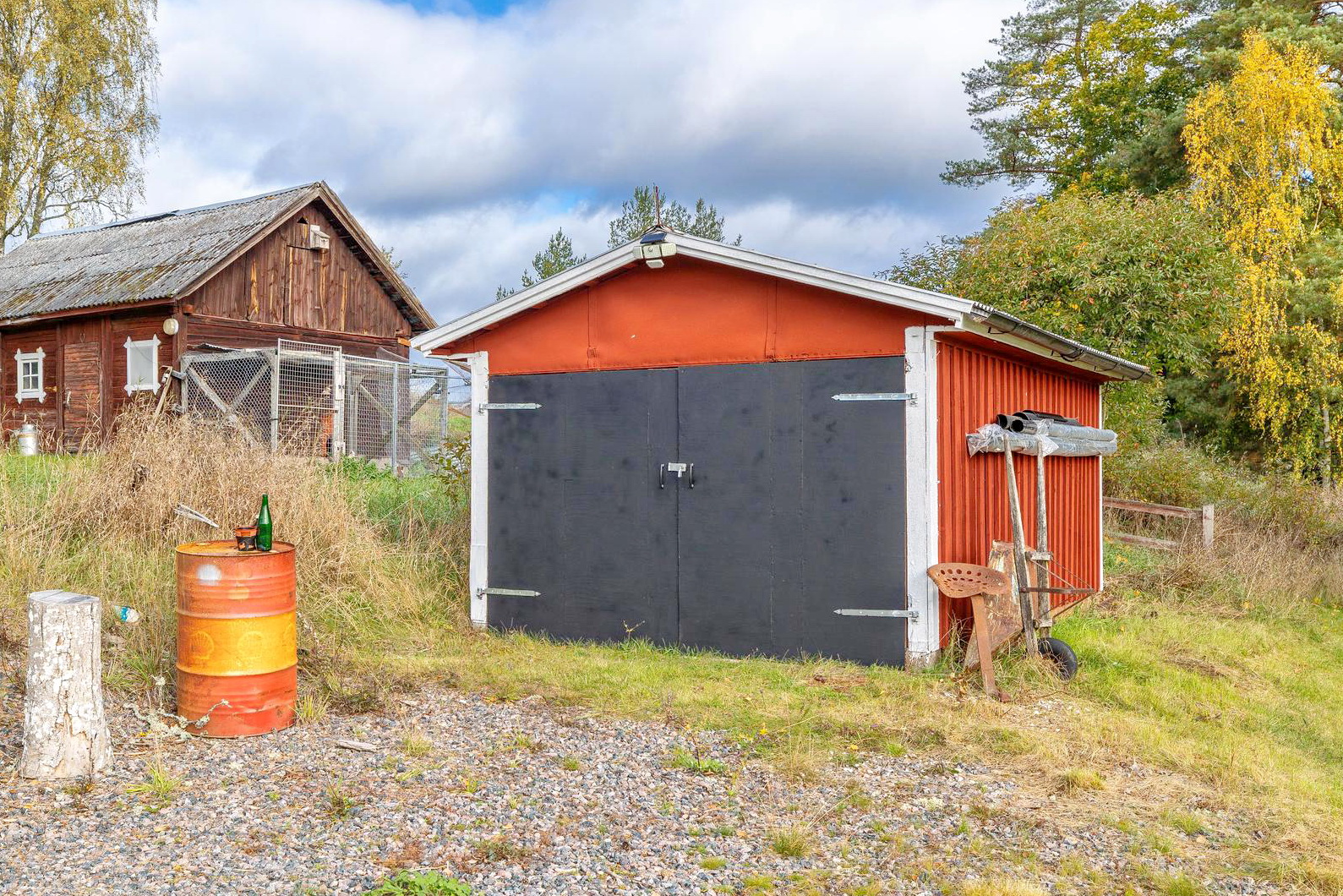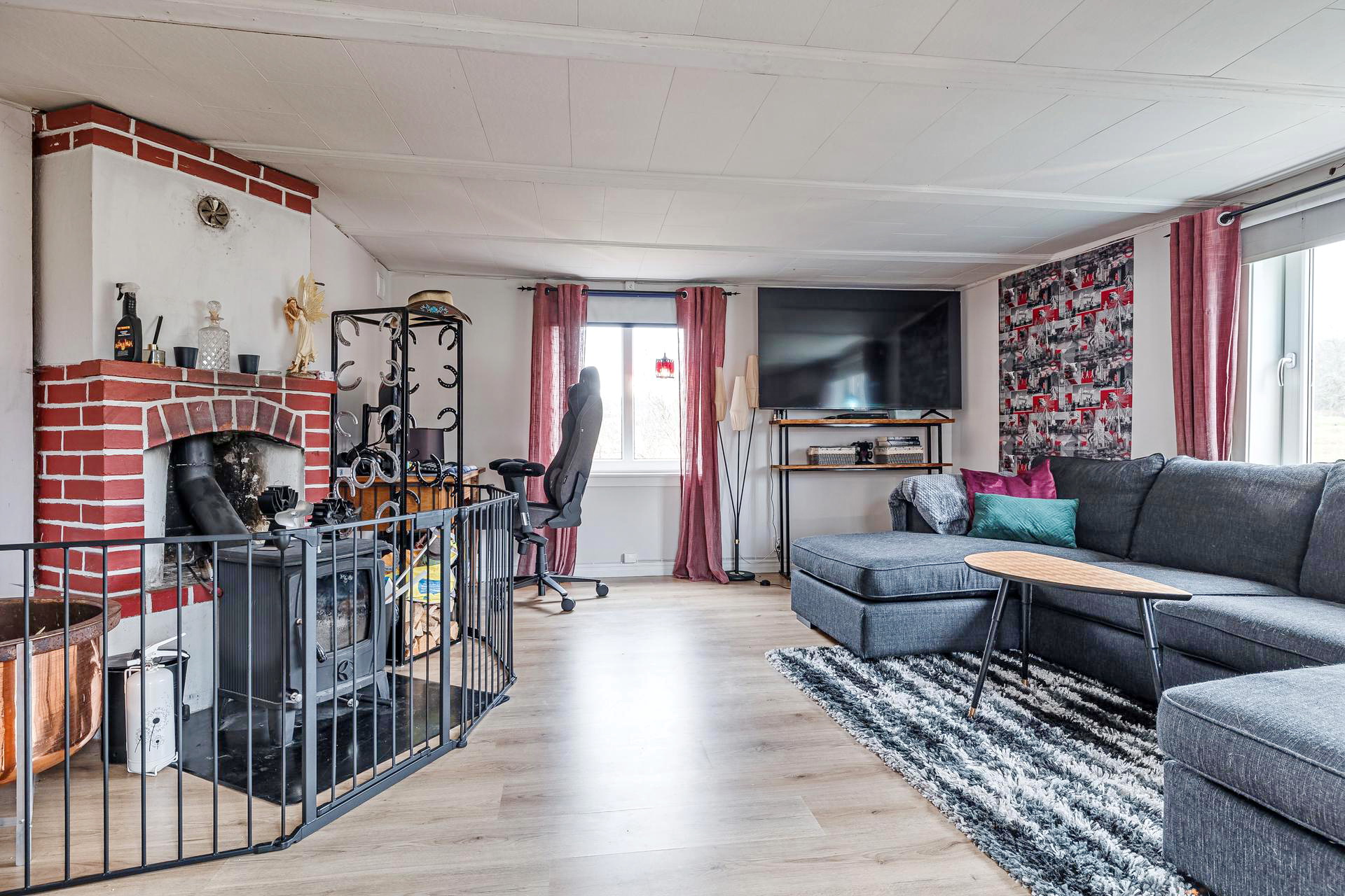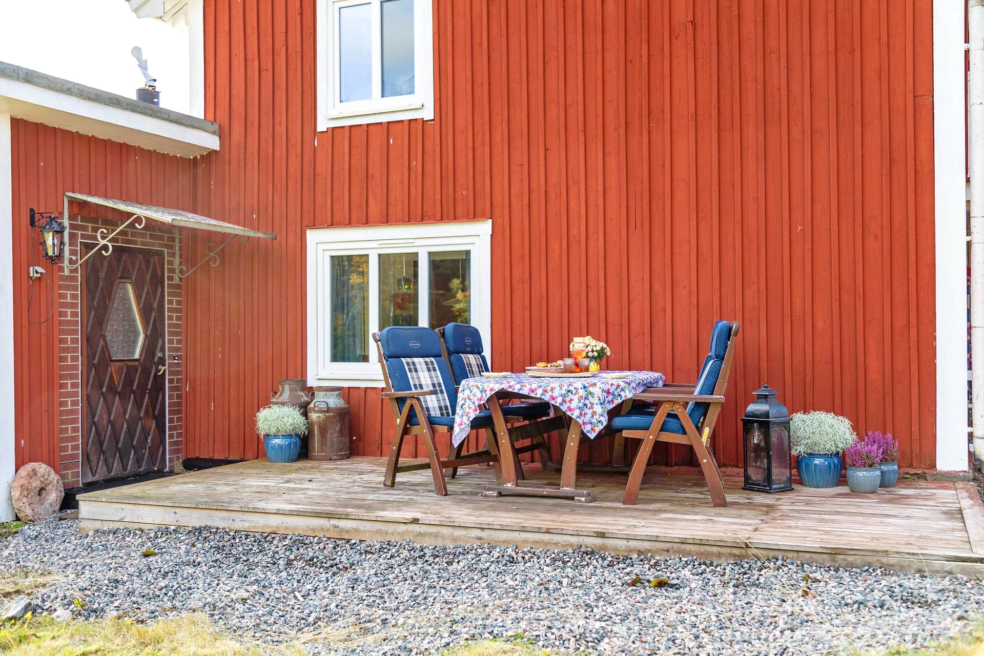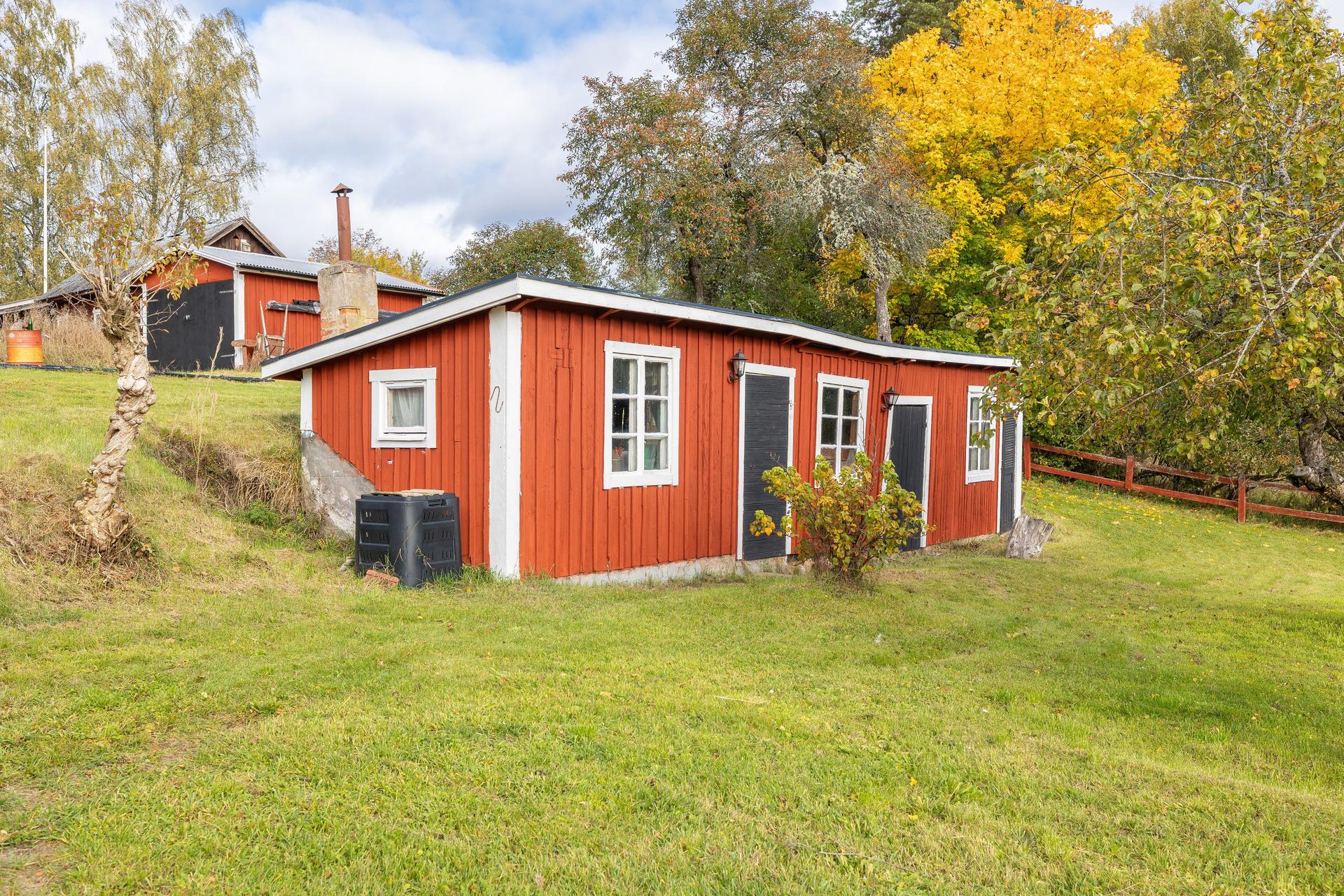 Älteres Schwedenhaus auf sonnigem Grundstück in ländlicher Lage am Dorfrand. Wohn- und Esszimmer, jeweils mit Kamin. 2 Schlafzimmer. Abstellschuppen + Garage.