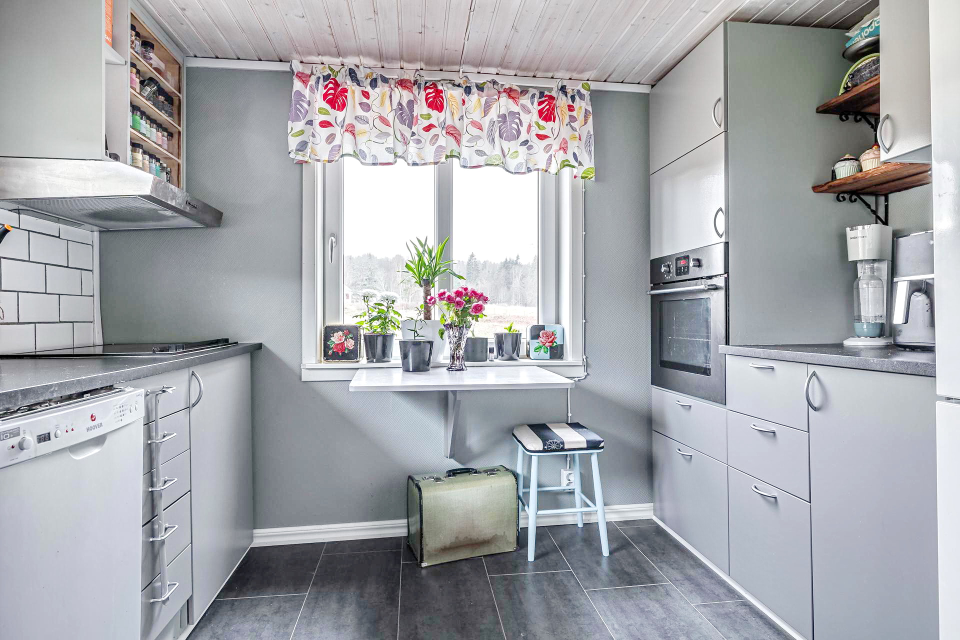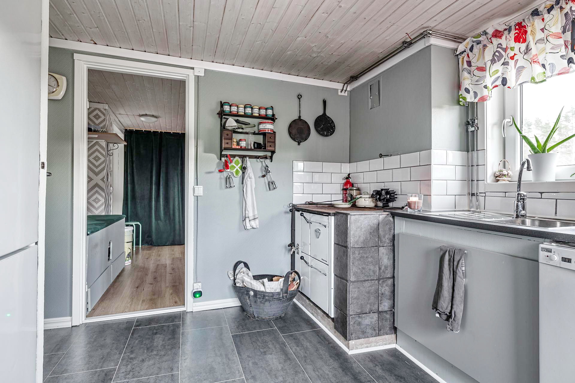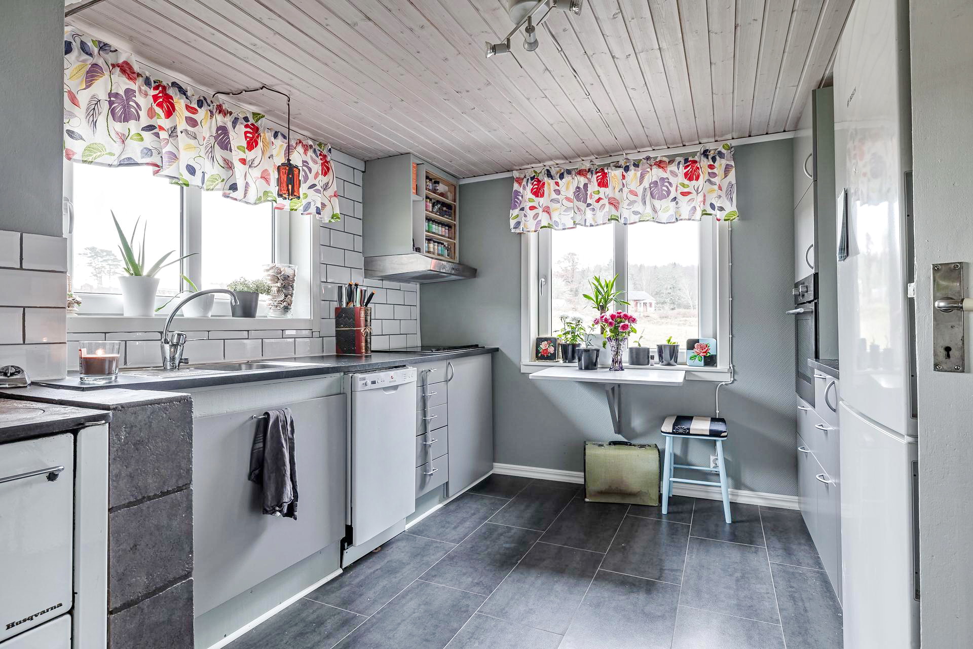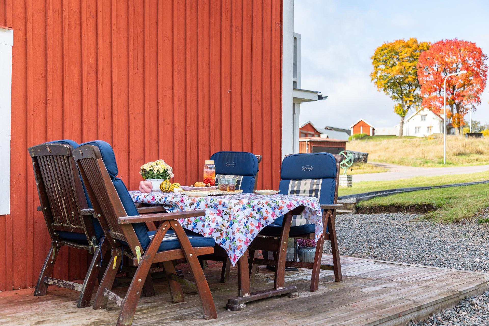 Älteres Schwedenhaus auf sonnigem Grundstück in ländlicher Lage am Dorfrand. Wohn- und Esszimmer, jeweils mit Kamin. 2 Schlafzimmer. Abstellschuppen + Garage.