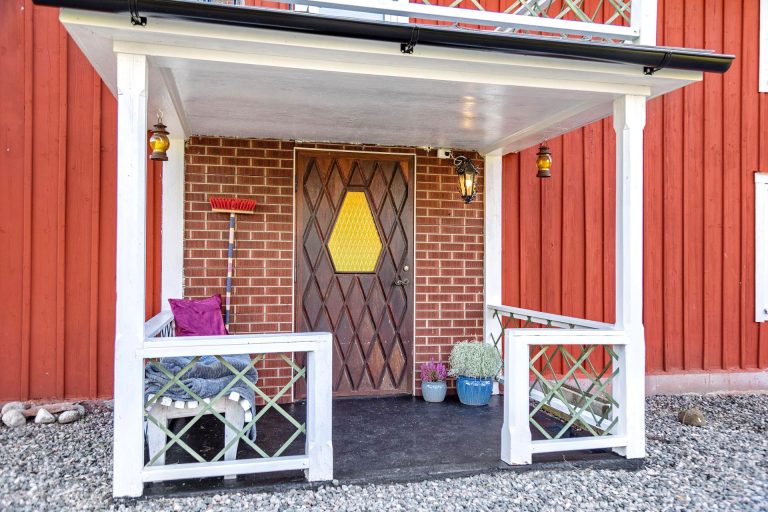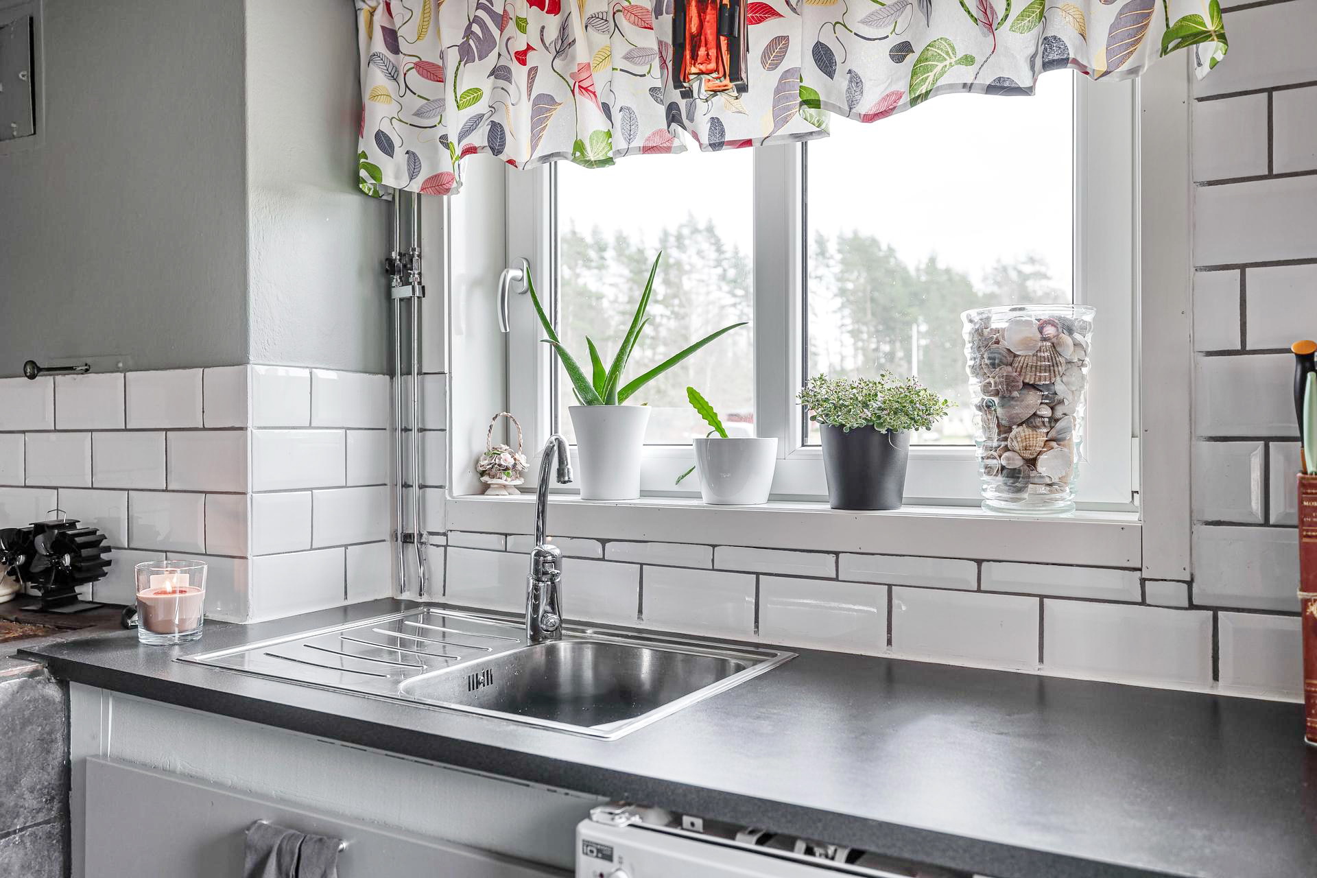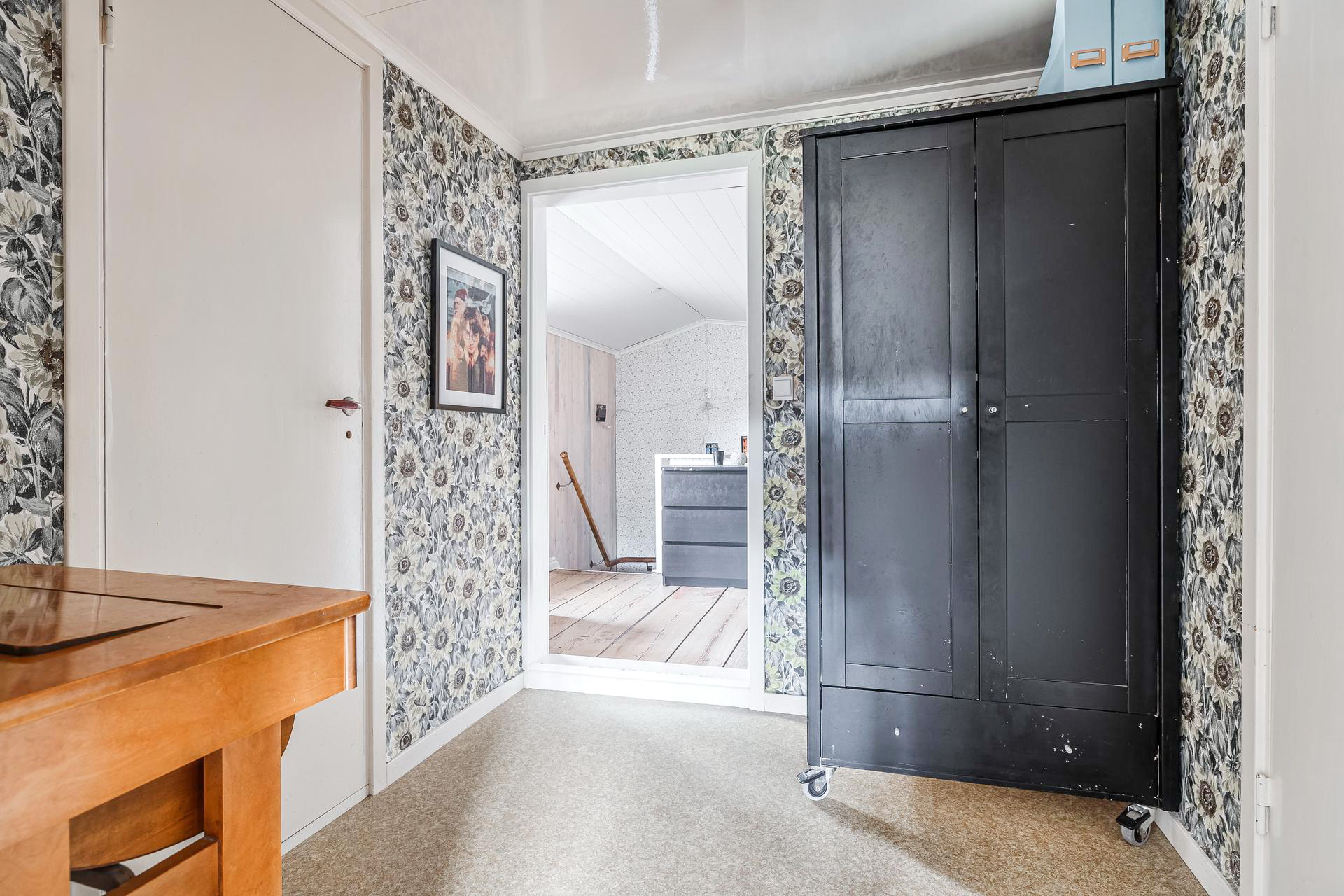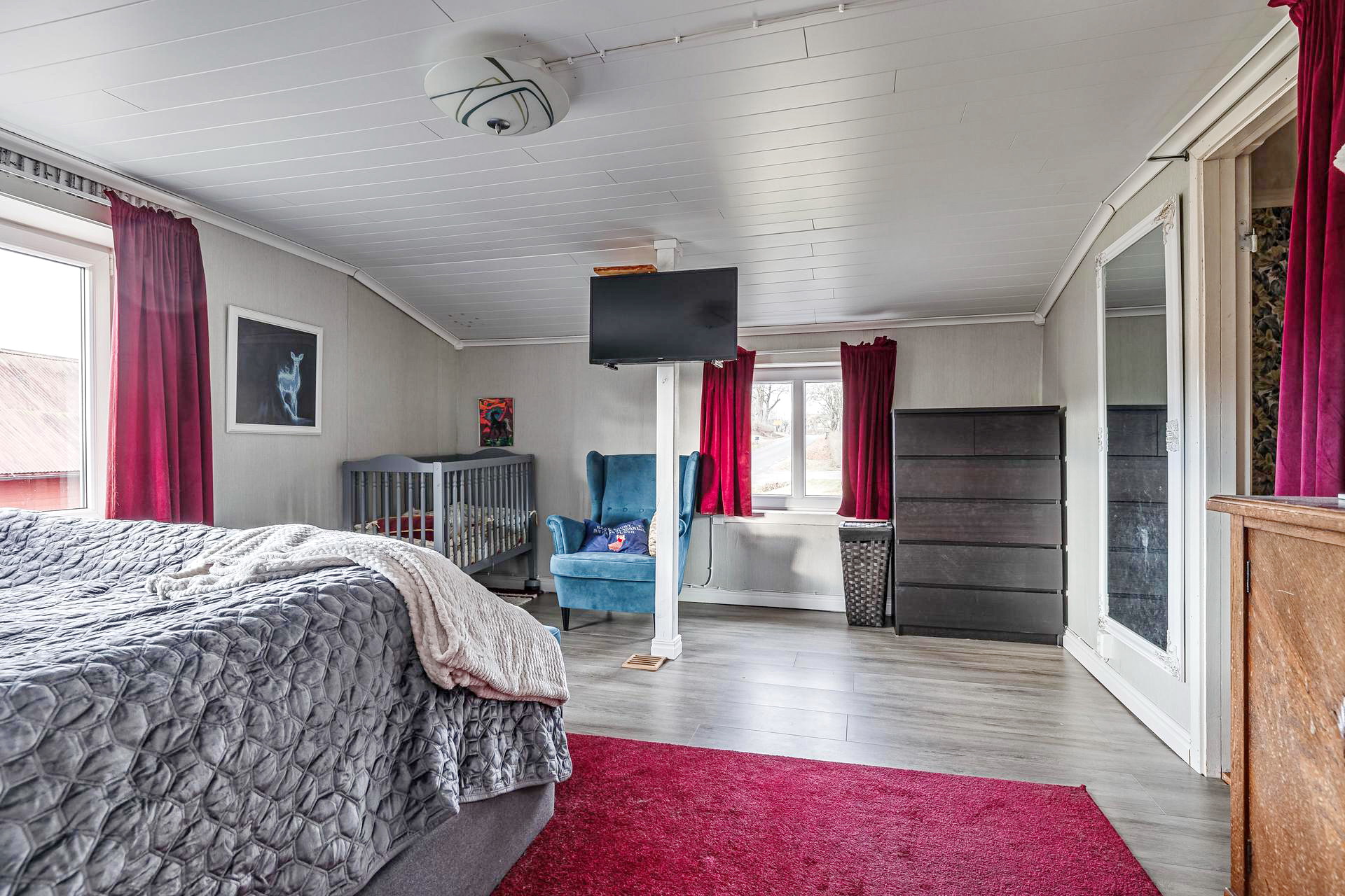Älteres Schwedenhaus auf sonnigem Grundstück in ländlicher Lage am Dorfrand. Wohn- und Esszimmer, jeweils mit Kamin. 2 Schlafzimmer. Abstellschuppen + Garage.