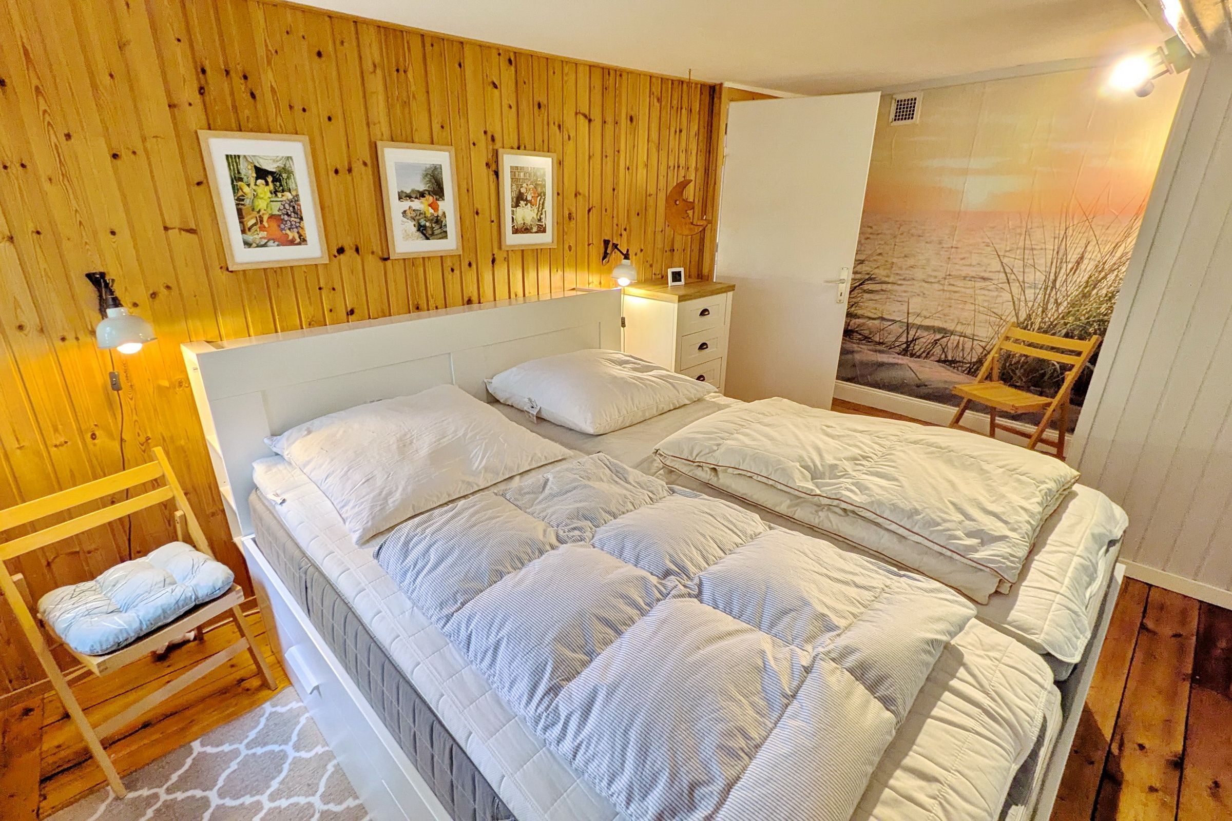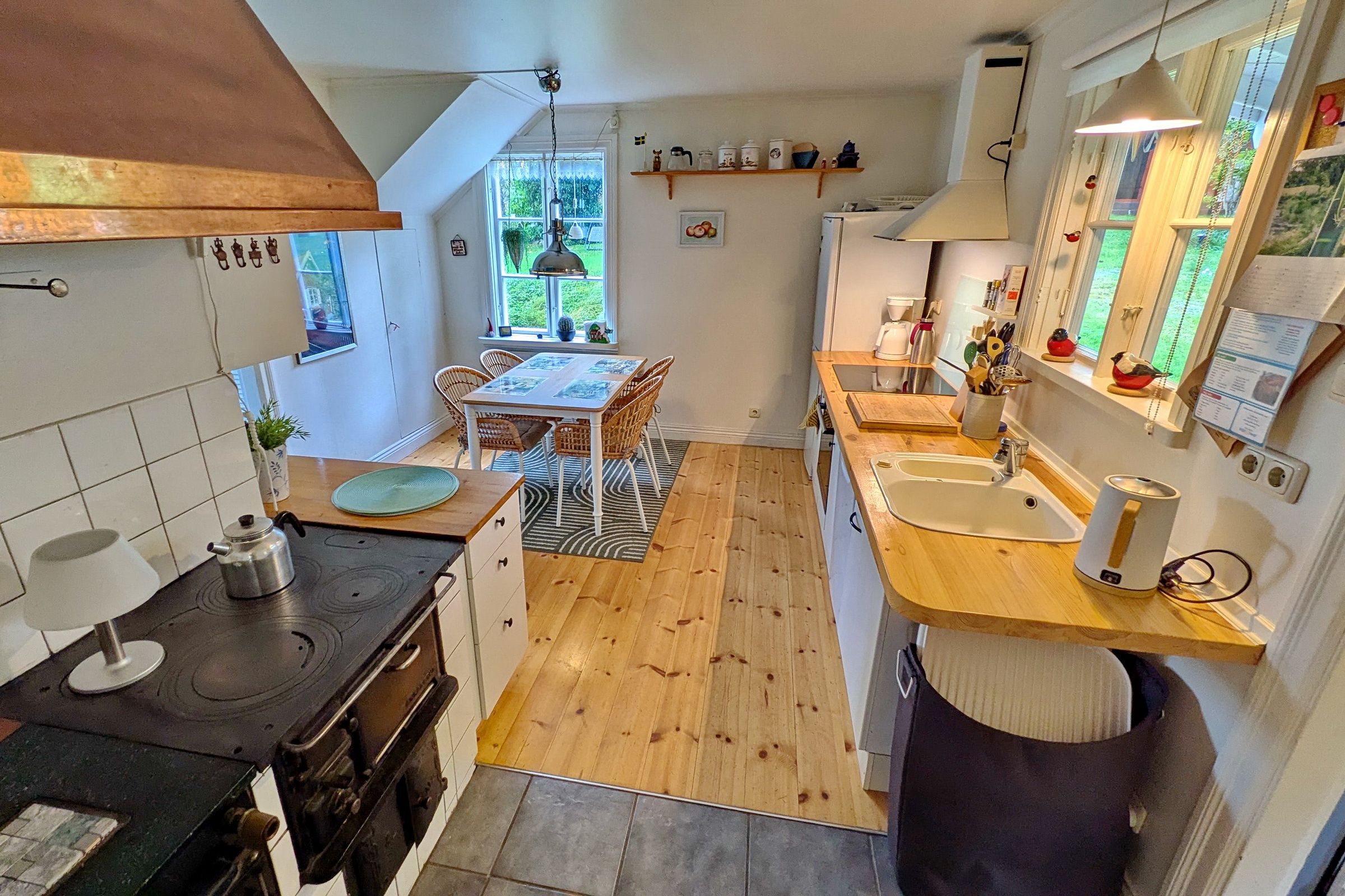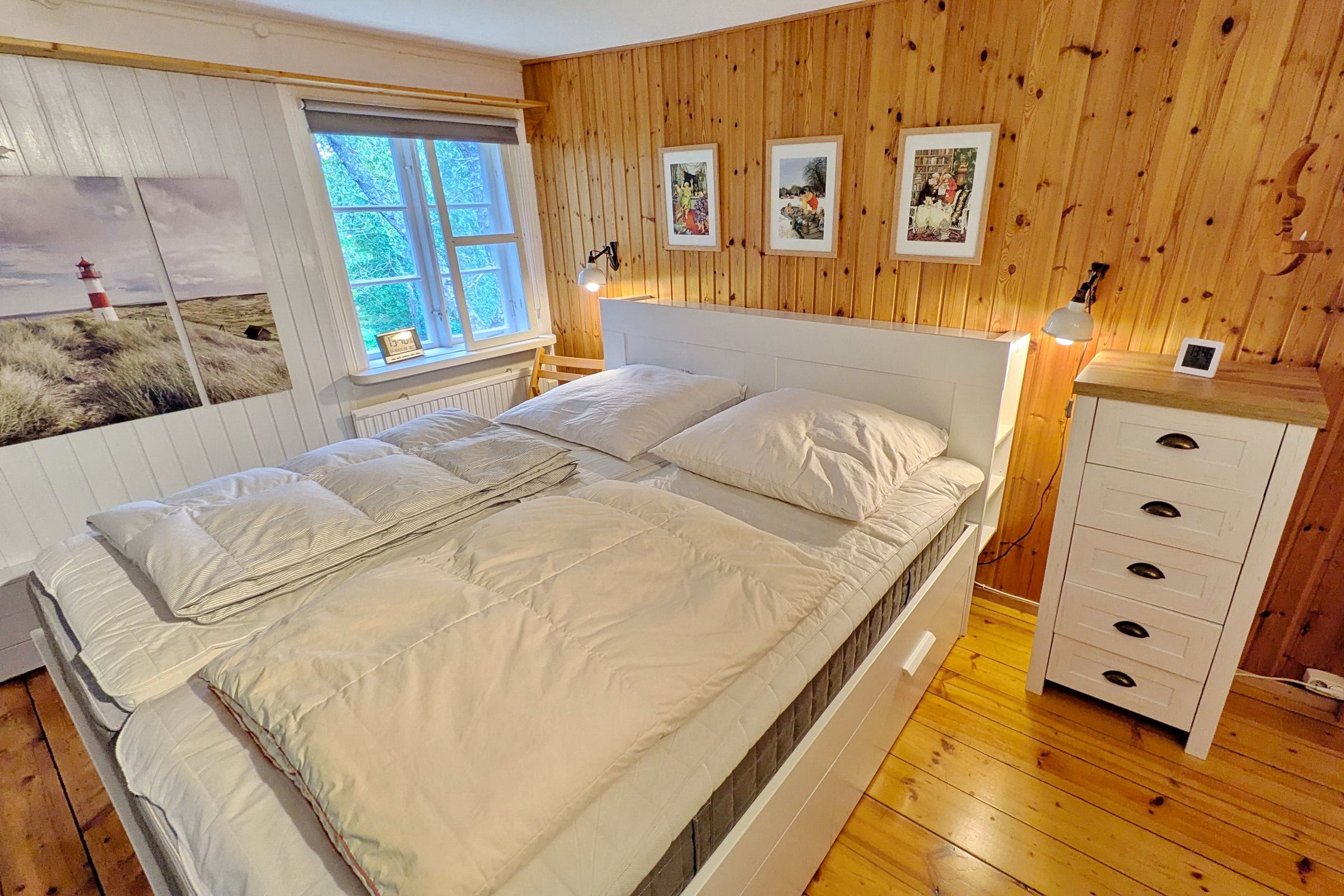 Im Erdgeschoss verfügt das Haus über ein gemütliches Wohnzimmer mit Kamin und deutschem Sat-TV. Die Küche mit Essplatz hat einen Kühl-Gefrierschrank, E-Herd + Geschirrspüler. Das Badezimmer ist mit WC, Waschmaschine und Dusche ausgestattet. Im Obergeschoss gibt es einen geräumigen Flur. Von hier aus gelangen Sie in die beiden Schlafzimmer. Es gibt ein Schlafzimmer mit Doppelbett und ein Schlafzimmer mit zwei Einzelbetten. Außerdem gibt es im Obergeschoss ein zweites kleines Badezimmer mit WC und Dusche.