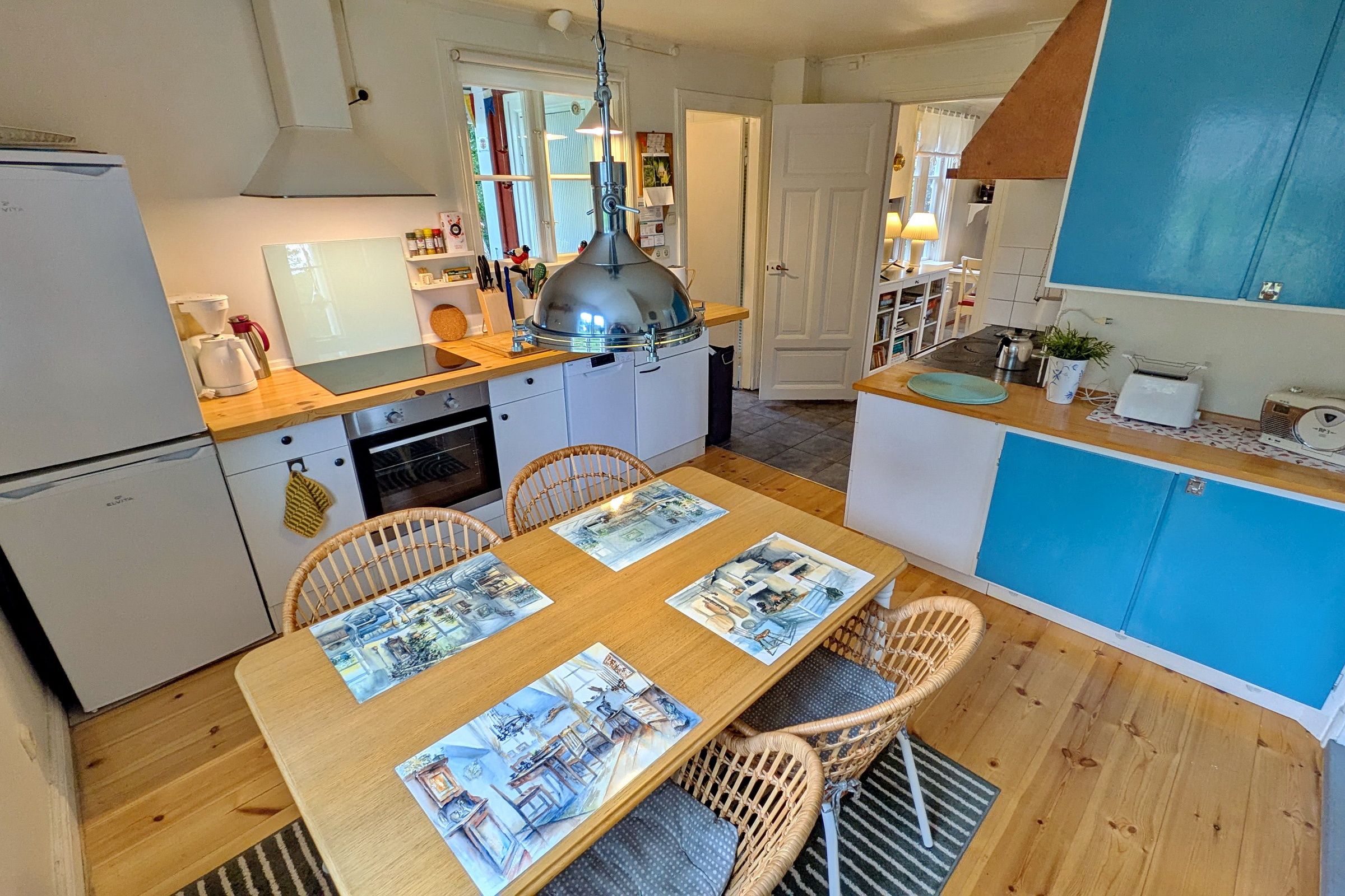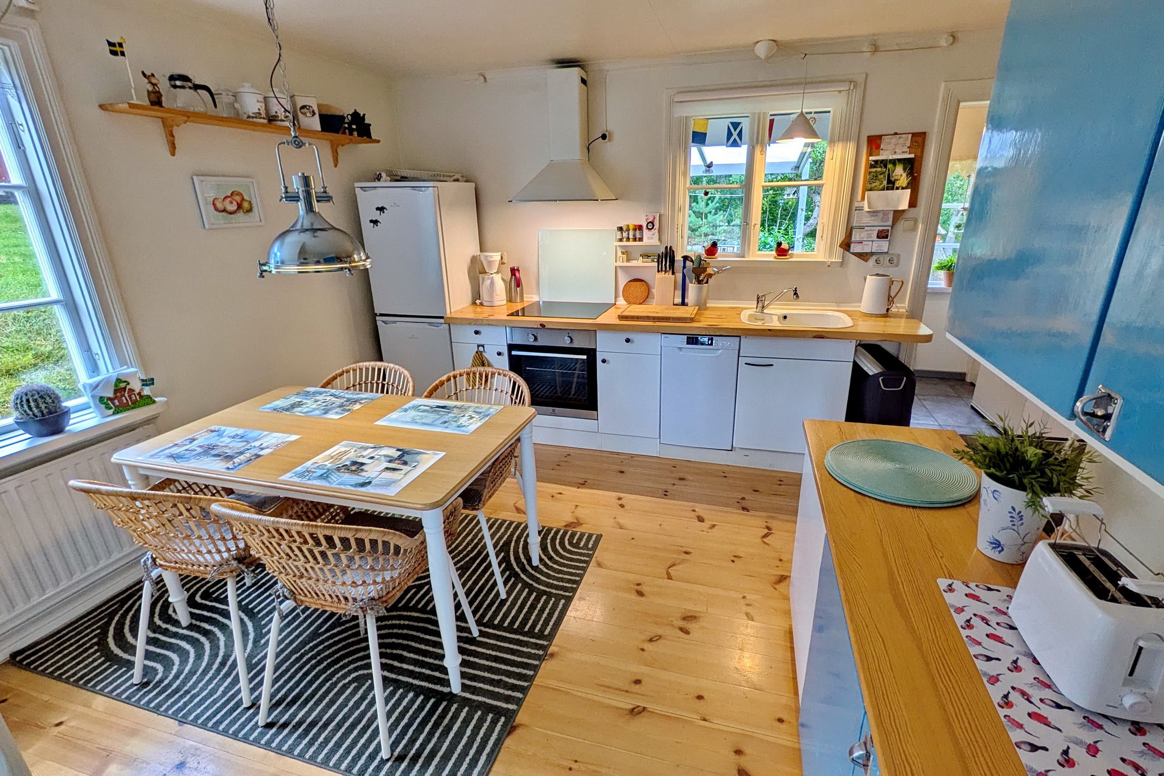 Typisch rot-weißes Schwedenhaus in schöner, ruhiger Lage am Waldrand. Wohnzimmer mit Kaminofen. 2 Schlafzimmer, 2 Badezimmer. Nur 200 Meter Fußweg zum Bade- und Angelsee mit Terrasse, Ruderboot und Kanu!