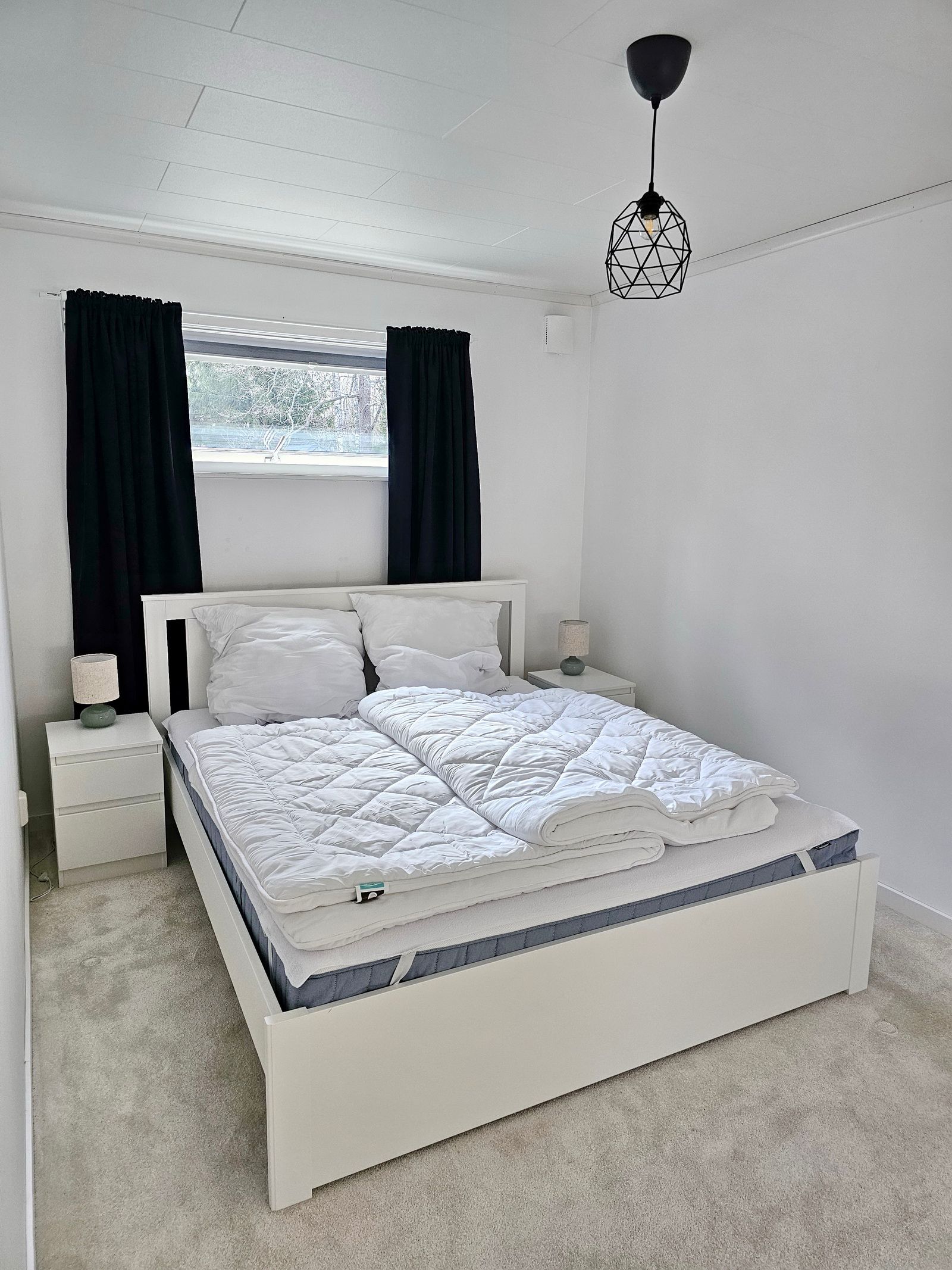 Das "Haus Ekorre" (ca. 71 m²) bietet vier Personen Platz. Für ein Baby/Kleinkind ist zusätzlich ein Kinderbett vorhanden. Das geräumige Wohnzimmer verfügt über TV, Kamin, Sofa und Essplatz Die gut ausgestatte Küche hat einen direkten Ausgang zu einer der beiden Terrassen des Hauses. Es gibt ein Schlafzimmer mit Doppelbett und ein Schlafzimmer mit Etagenbett. Das Badezimmer des Hauses verfügt über WC und Dusche. Eine Waschmaschine ist im Flur des Hauses vorhanden. WLAN ist im Haus inklusive.