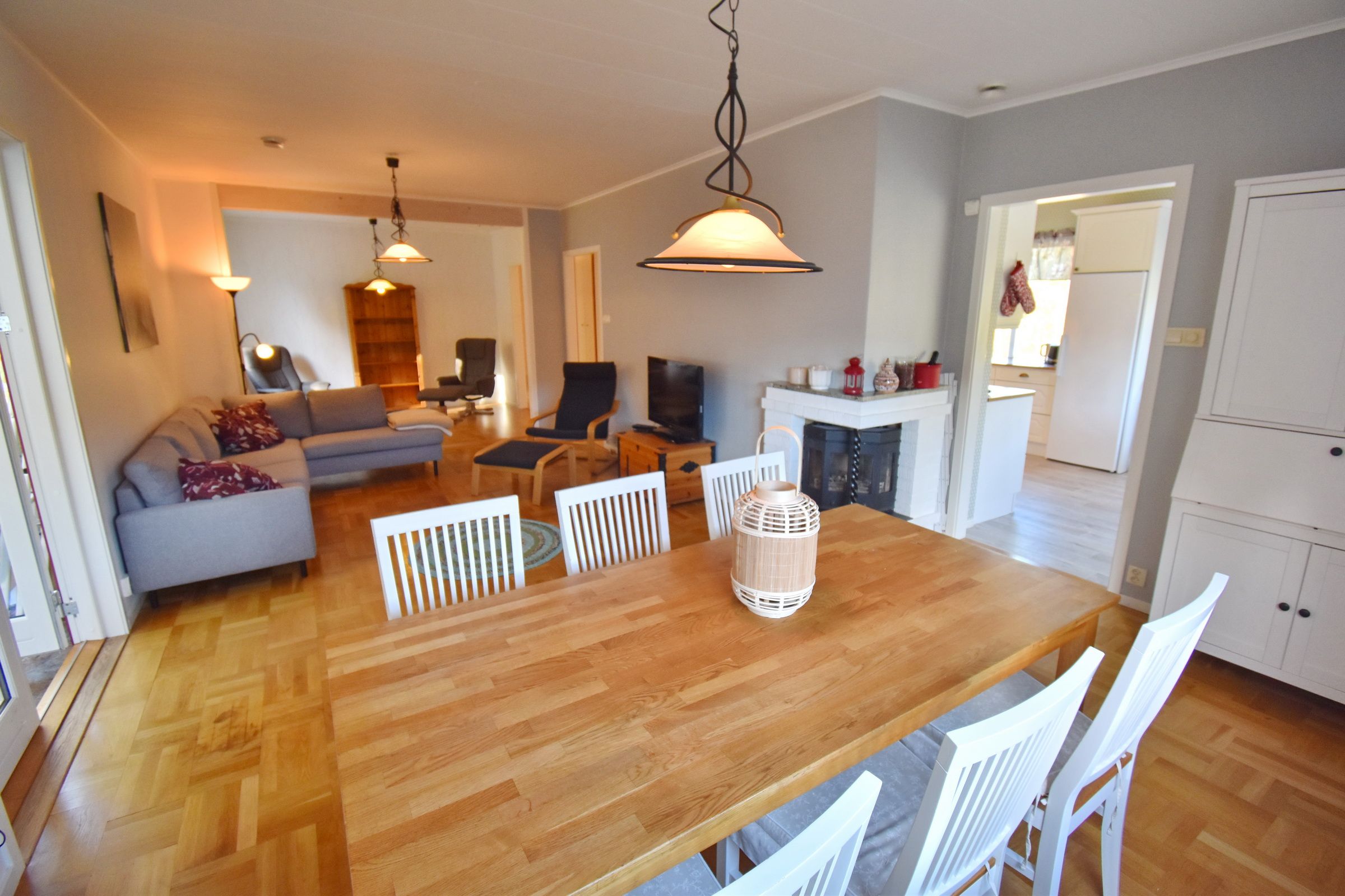 Nach betreten des Hauses gelangen Sie in einen geräumigen Flur von hier geht es in die große Küche mit guter Ausstattung und Essplatz, sowie in das geräumige Wohn- und Esszimmer mit Kamin und deutschem Sat-TV. Angrenzend gibt es einen schönen Wintergarten mit Esstisch und Ausgang zum Garten hinter dem Haus. Das Haus bietet Ihnen vier Schlafzimmer auf einer Ebene, zwei mit Doppelbett, eines mit einem 140cm-Bett und eines mit Etagenbett. Es finden also bis zu 8 Personen Platz für die es auch zwei Badezimmer mit WC und Dusche im Haus gibt.