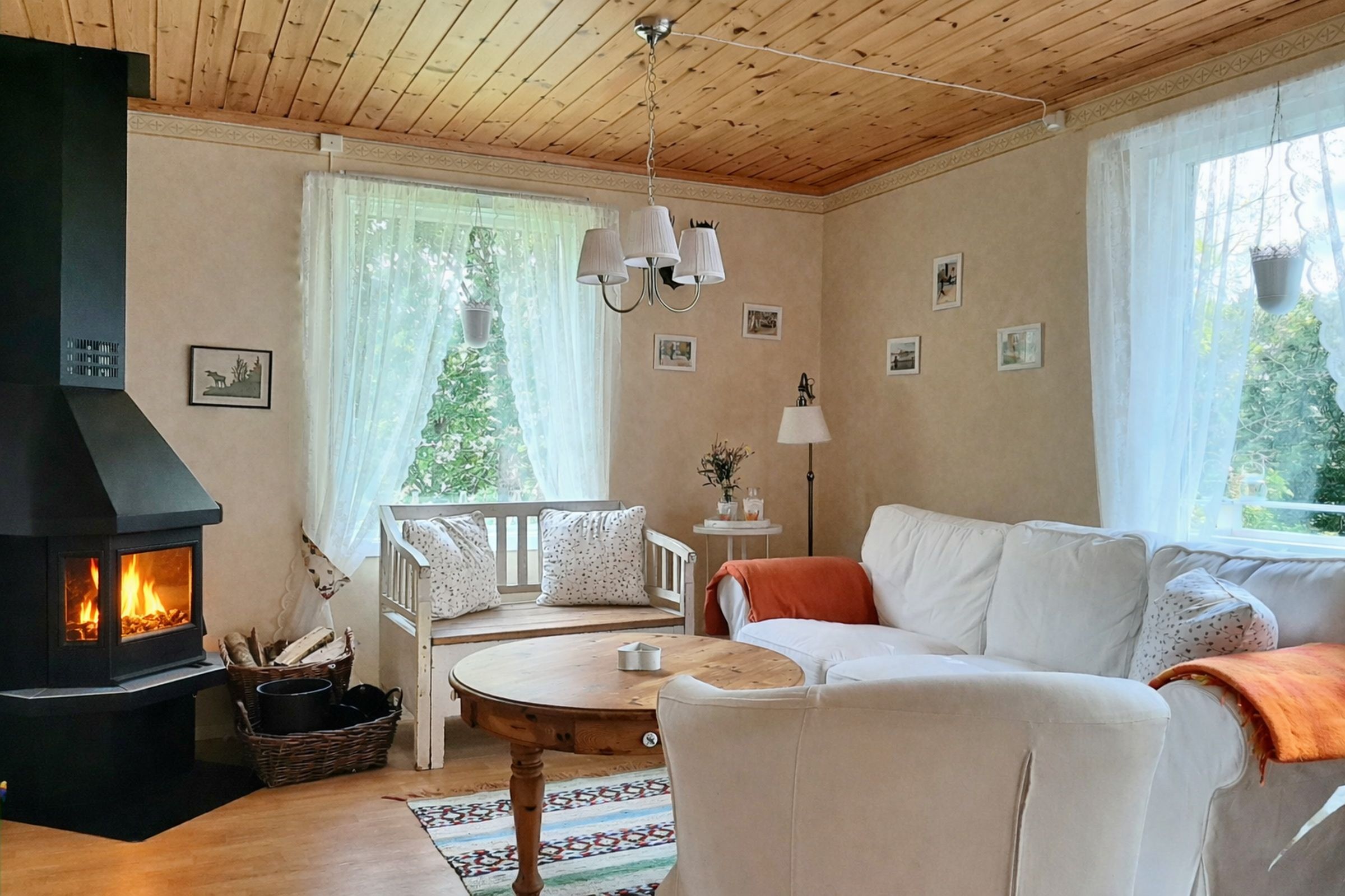 Das Haus bietet auf 54 m² Wohnfläche viel Gemütlichkeit für 2-4 Personen. Zusätzlich gibt es ein uriges "Tiny-House" für 2 weitere Personen im Garten, ideal für Kinder/Jugendliche! "Haus Kulla" ist also sowohl für Paare also auch für Familien sehr gut geeignet! Zwischen dem Wohnbereich mit Kaminofen und deutschem Sat-TV und dem Essbereich mit Esstisch und Küche besteht ein offener Übergang. In einer Ecke des Wohnbereichs steht ein Doppelbett. Zusätzlich gibt es ein separates Schlafzimmer mit Etagenbett. Das Badezimmer verfügt über eine moderne Biotoilette, sowie eine Waschmaschine und eine Dusche. Vom Wohnraum gelangen Sie auch nach draußen auf die große Veranda mit Blick in die Natur!