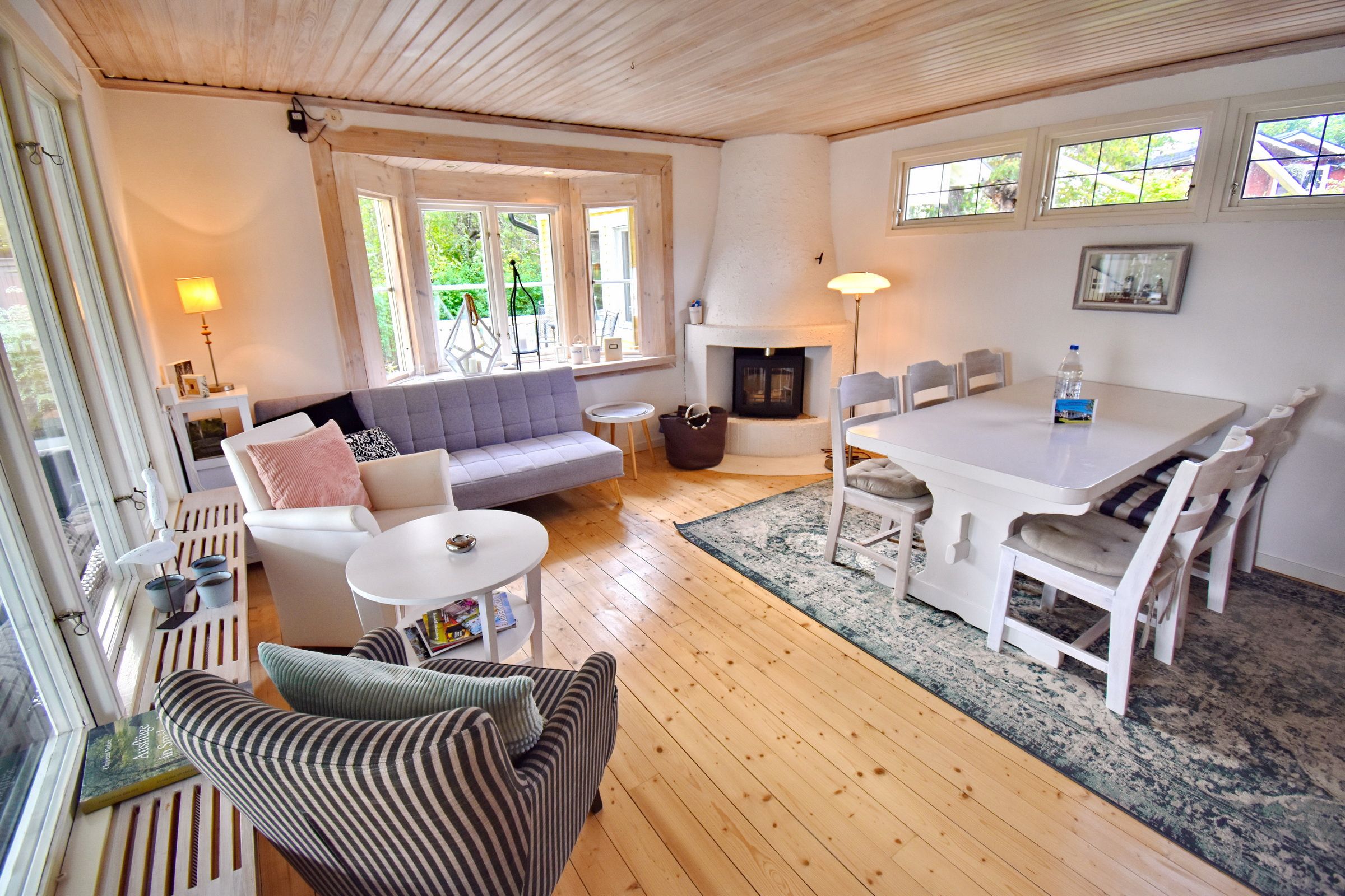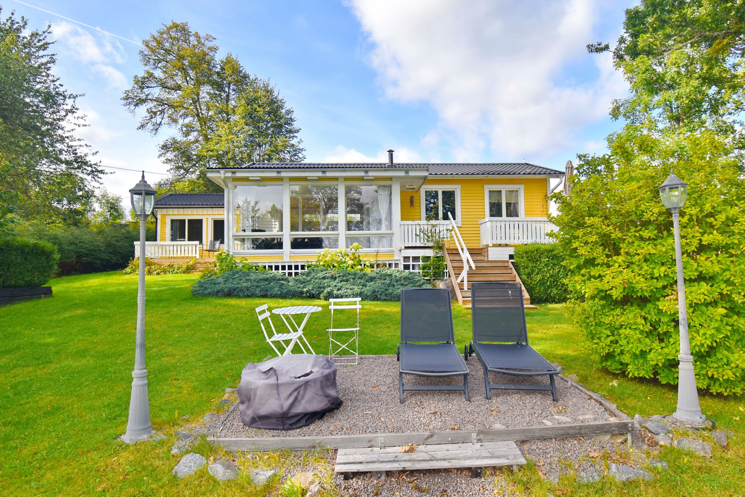 Beim Eintritt in das 69 qm frisch renovierte Haus kann man schon einen Blick auf den See Flaten werfen. Vom Hausflur erreicht man die beiden Schlafzimmer, das moderne Badezimmer, sowie die Küche und den Wohnraum. Am Wohnzimmer angrenzend schließt sich ein hübscher Wintergarten an. Vom Wohnzimmer, Küche, einem Schlafzimmer und Wintergarten hat man einen herrlichen Seeblick! In der Küche findet man alles, was man zum Leben braucht (E-Herd mit Backofen, Mikrowelle, Kaffeemaschine, Mixer, Toaster, Kühlgefrierschrank). Im Wohnzimmer kann man das Google TV Fernsehen genießen oder auch im Internet (Glasfaser W-Lan) surfen. Auf den drei Holzterrassen rund um das Haus lässt man je nach Sonnenstand die Gegend auf sich wirken oder liest z.B. ein gutes Buch. Ein kleines Gästehaus hält noch eine weitere Schlafmöglichkeit mit einem Doppelbett bereit. Auch von hier aus hat man einen herrlichen Seeblick.