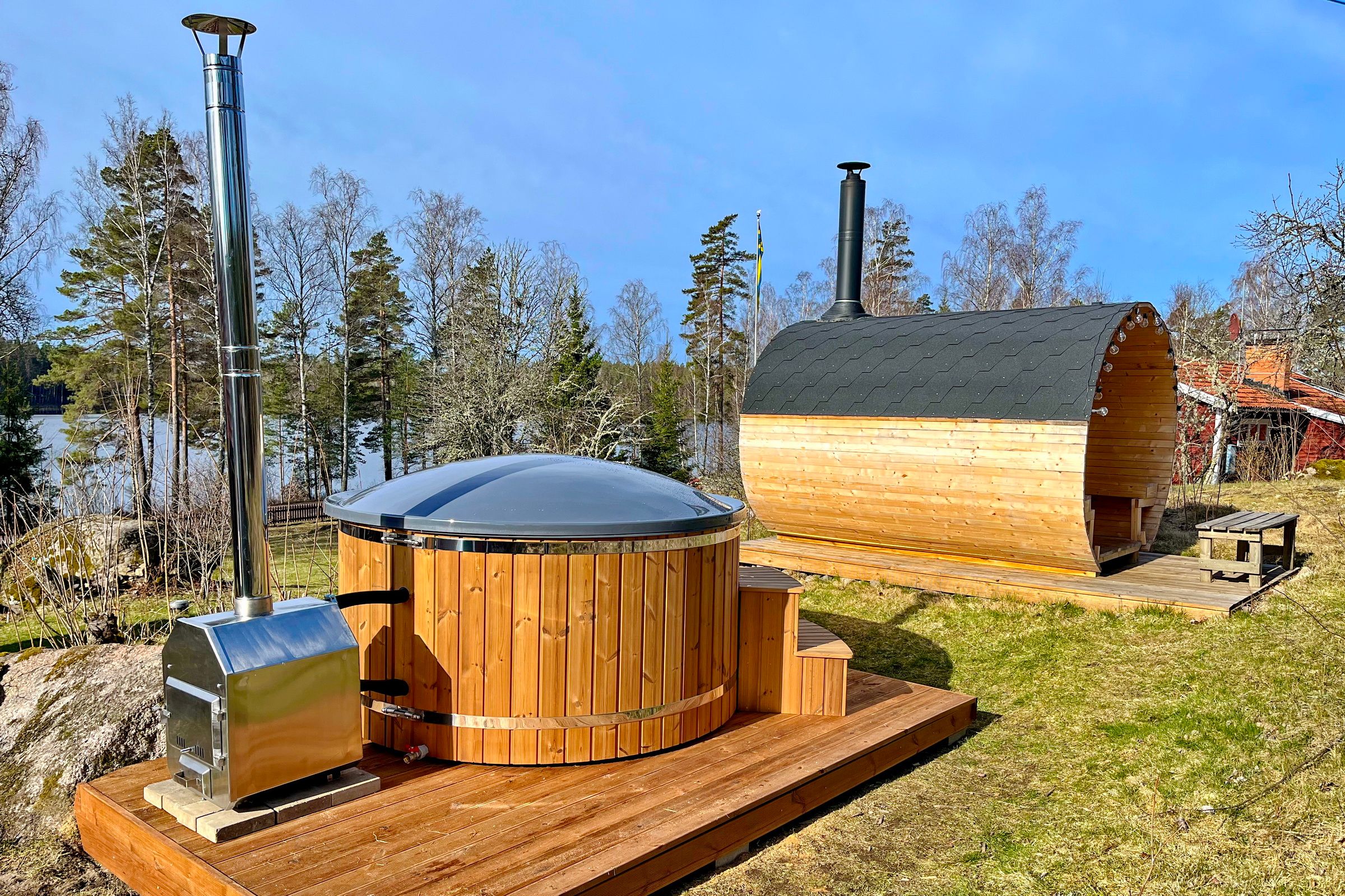 Charmantes, typisch rot-weißes Schwedenhaus mit Seeblick! 50 Meter zum Seeufer mit eigenem Boots- und Badesteg. Geschmackvolle Einrichtung mit moderner Küche + Bad. Wohnzimmer mit Kaminofen. Holzbefeuerter Badezuber + Sauna im Garten!