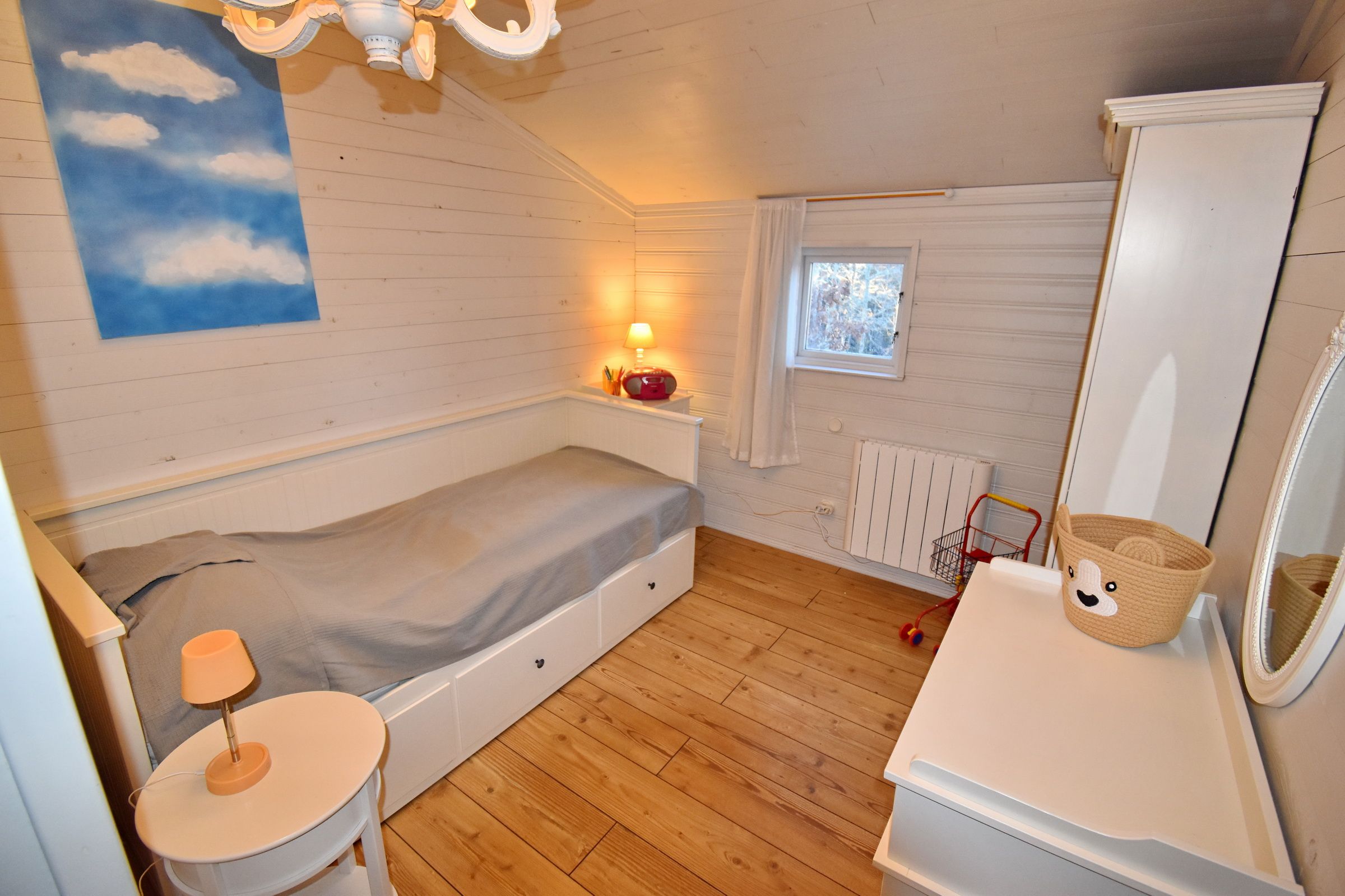 Vom Haus gelangen Sie in 5 Minuten (500m) über einen etwas abenteuerlichen Fußweg zur schönen Badestelle am See. Sie können auch mit dem Auto zum See fahren (1,5 km). Hier gibt es eine große Liegewiese, eine Schaukel, Feuerstelle und einen kinderfreundlichen, flach-abfallenden Badestrand. Am See liegt auch das hauseigene Ruderboot für Sie bereit um den See zu erkunden.